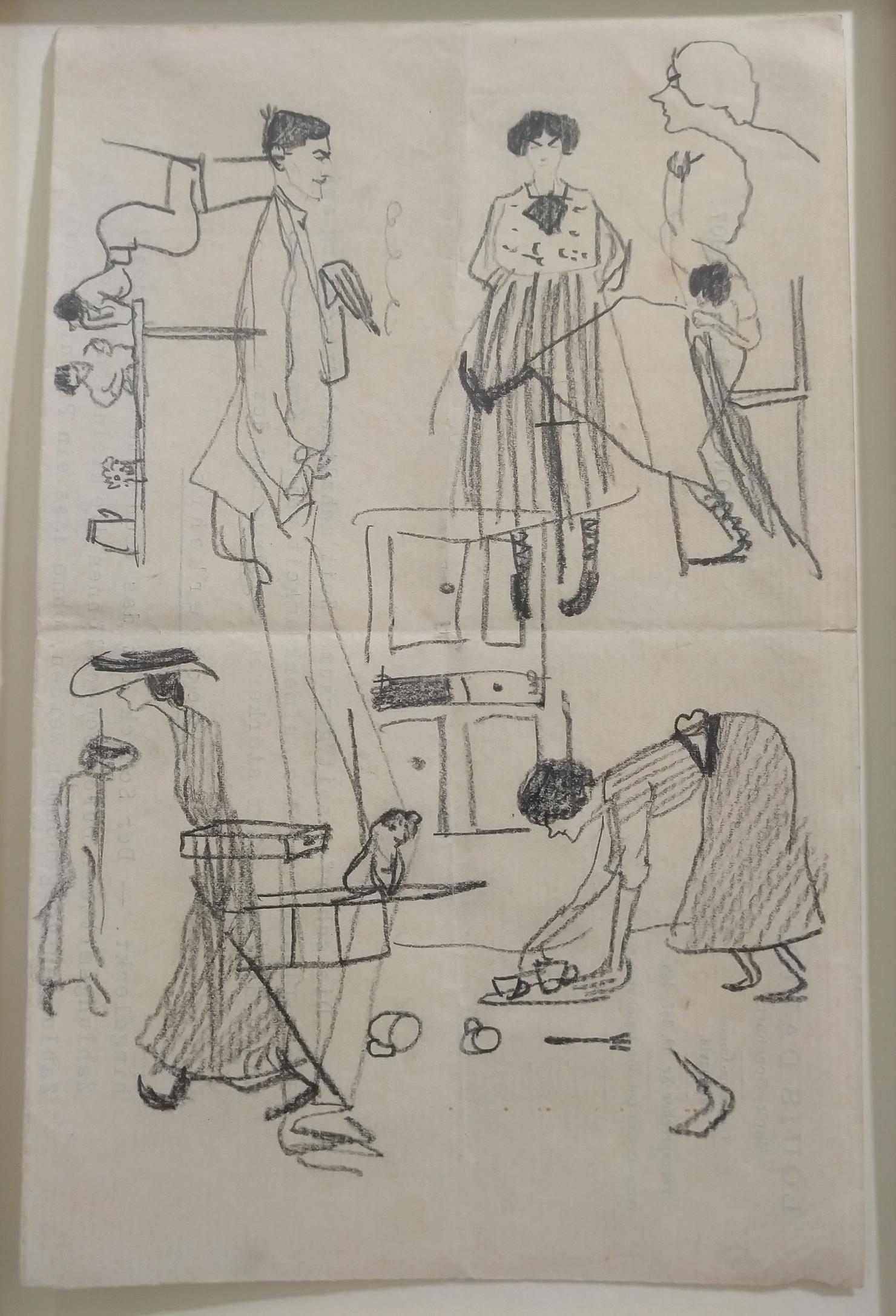 Los, nächster Buchstabe!“ Warum fügt er solche Aussprüche in seine Bilder ein? „In meinen Zeichnungen lasse ich meine Figuren sprechen, um etwas Bewegung hineinzubringen. Wie in den Comics. Es wird lebendig. Wenn ich den Text weglasse, dann ist es nicht mehr stimmig. Ich schreibe immer ein paar Worte oder zeichne Pfeile dazu.“