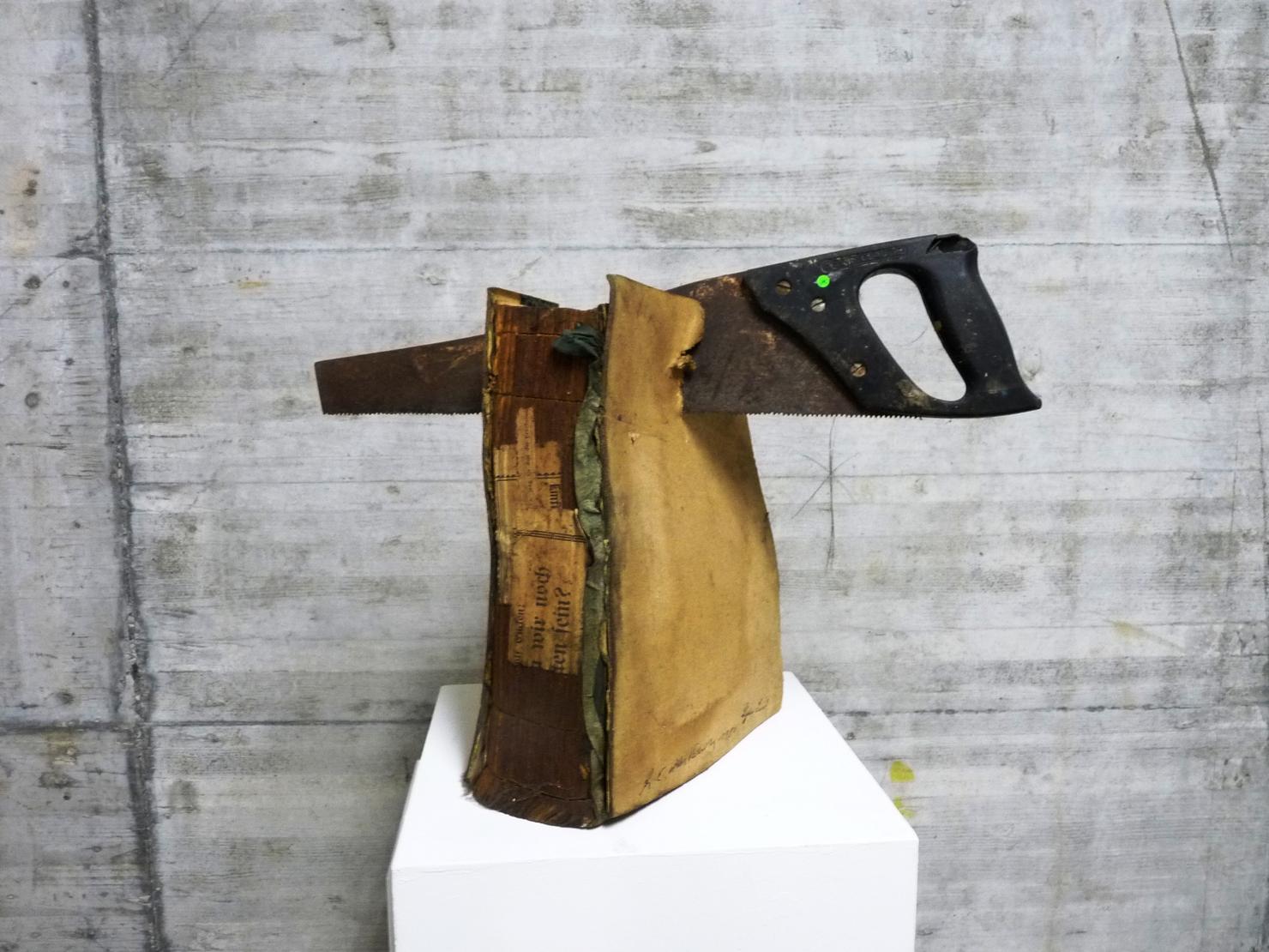 Buch mit Fuchsschwanz (Säge).