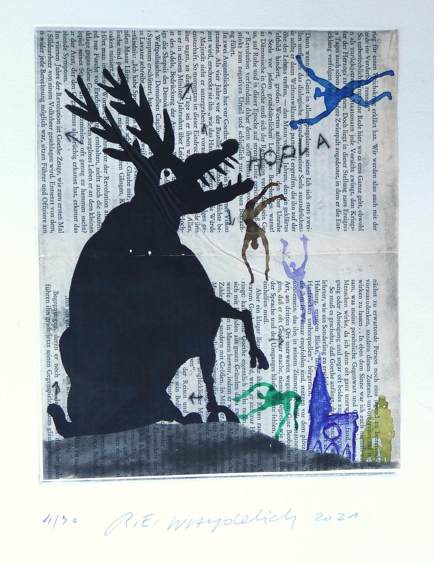 4. **Handtechniken**: Durch zusätzliche Handtechniken, wie das mehr oder weniger starke Reiben des Papiers in bestimmten Bereichen, konnte auch die Menge der übertragenen Tinte beeinflusst und der Verlaufseffekt verstärkt werden.
