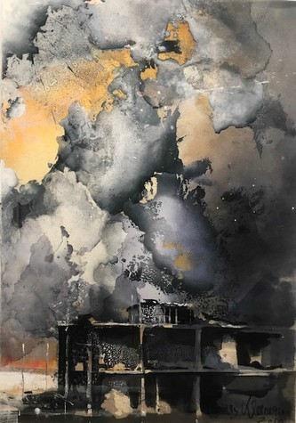 Mischtechnik auf Leinwand, Foamboard auf Holz