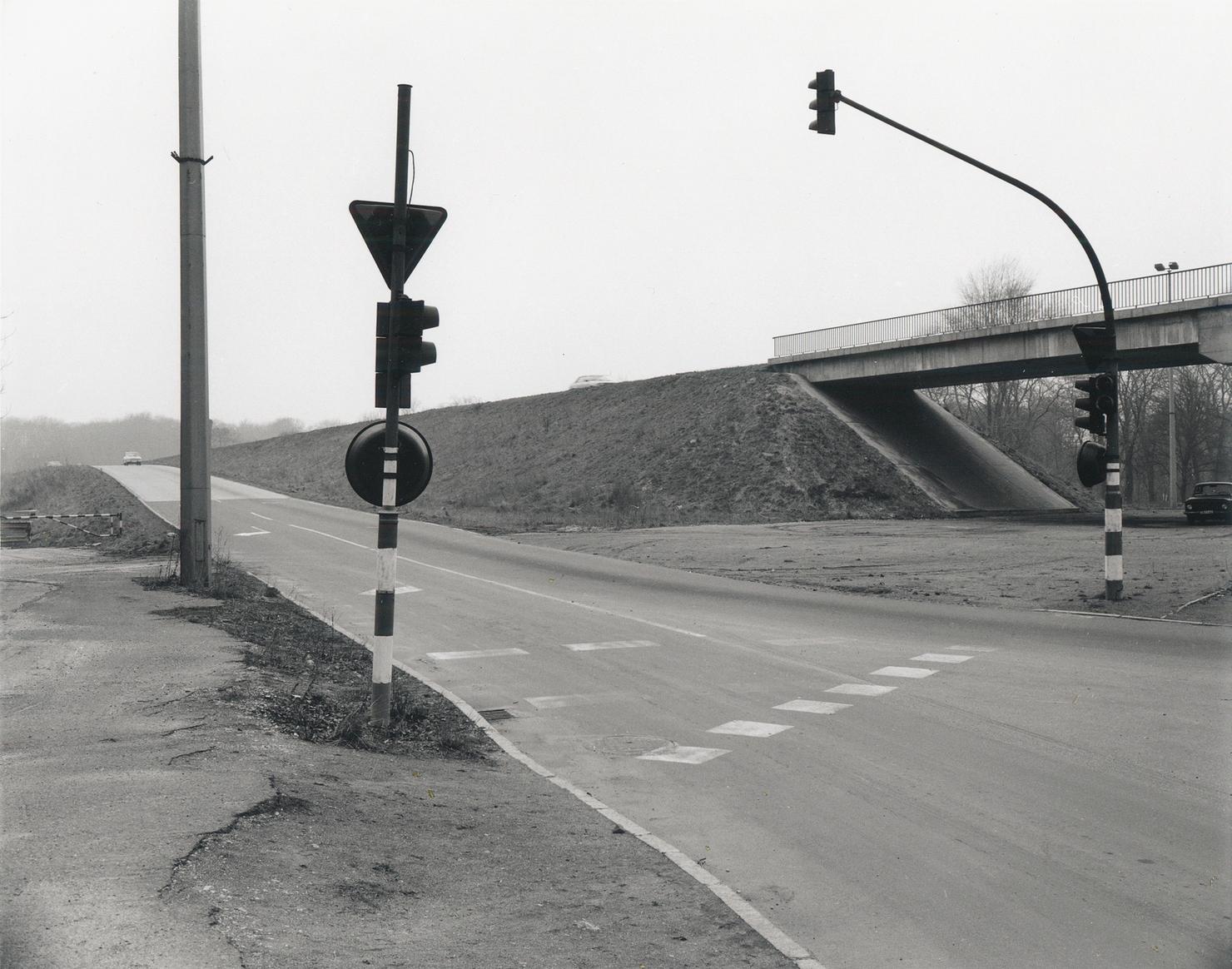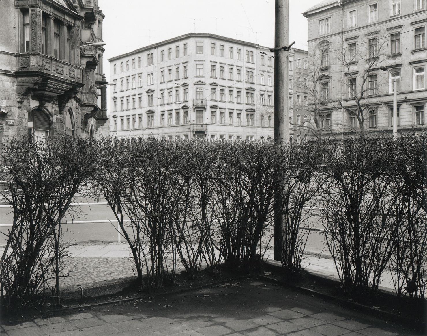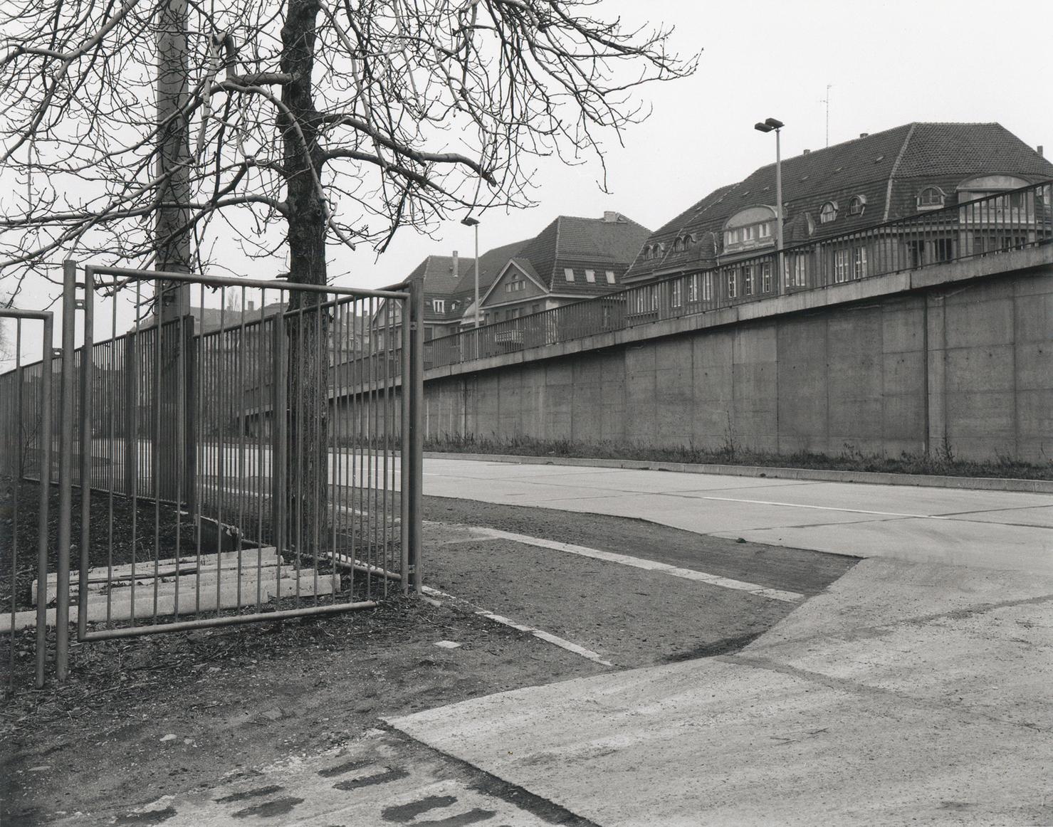 "“In the mid-1980s I started taking a greater interest in urban spaces. Unspectacular places, which I photographed in such a way that as little as possible was happening in the pictures. I didn’t need or want any pretext for making a photo: no event, no sun, no shadow, no people. This was incredibly exciting for me, and I felt that it was subversive to translate the structural shell of a city into legible signs, to lift it out of space and time. This procedure was always subjective, because everyone has a different image of familiar spaces and places: this one here is mine. The pictures come about in my head.” (MH, 1990)