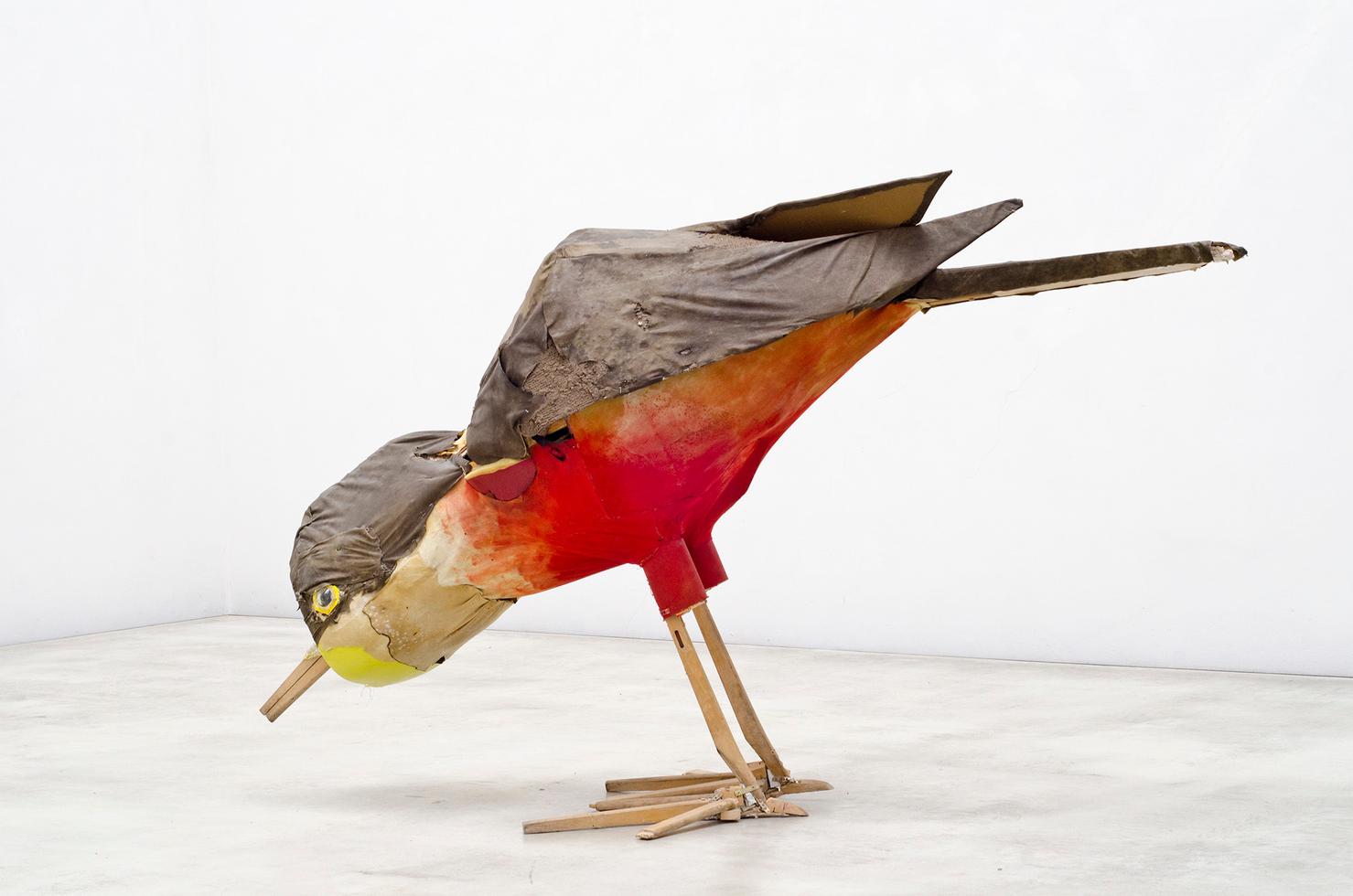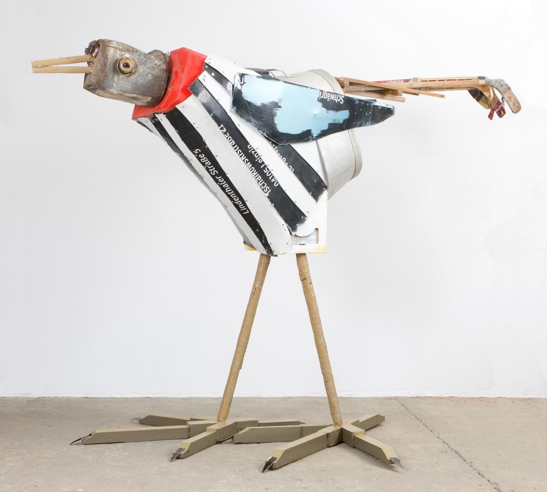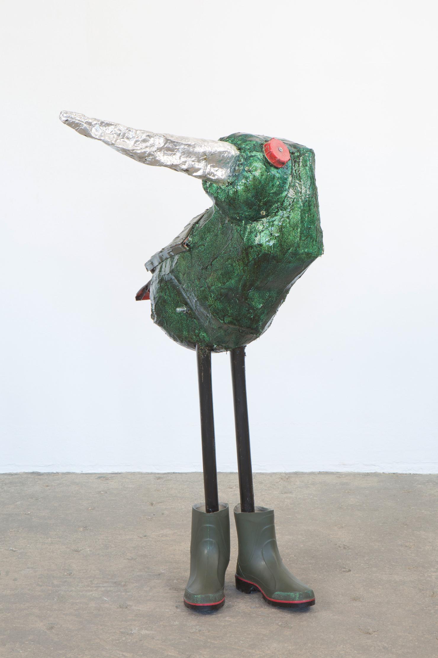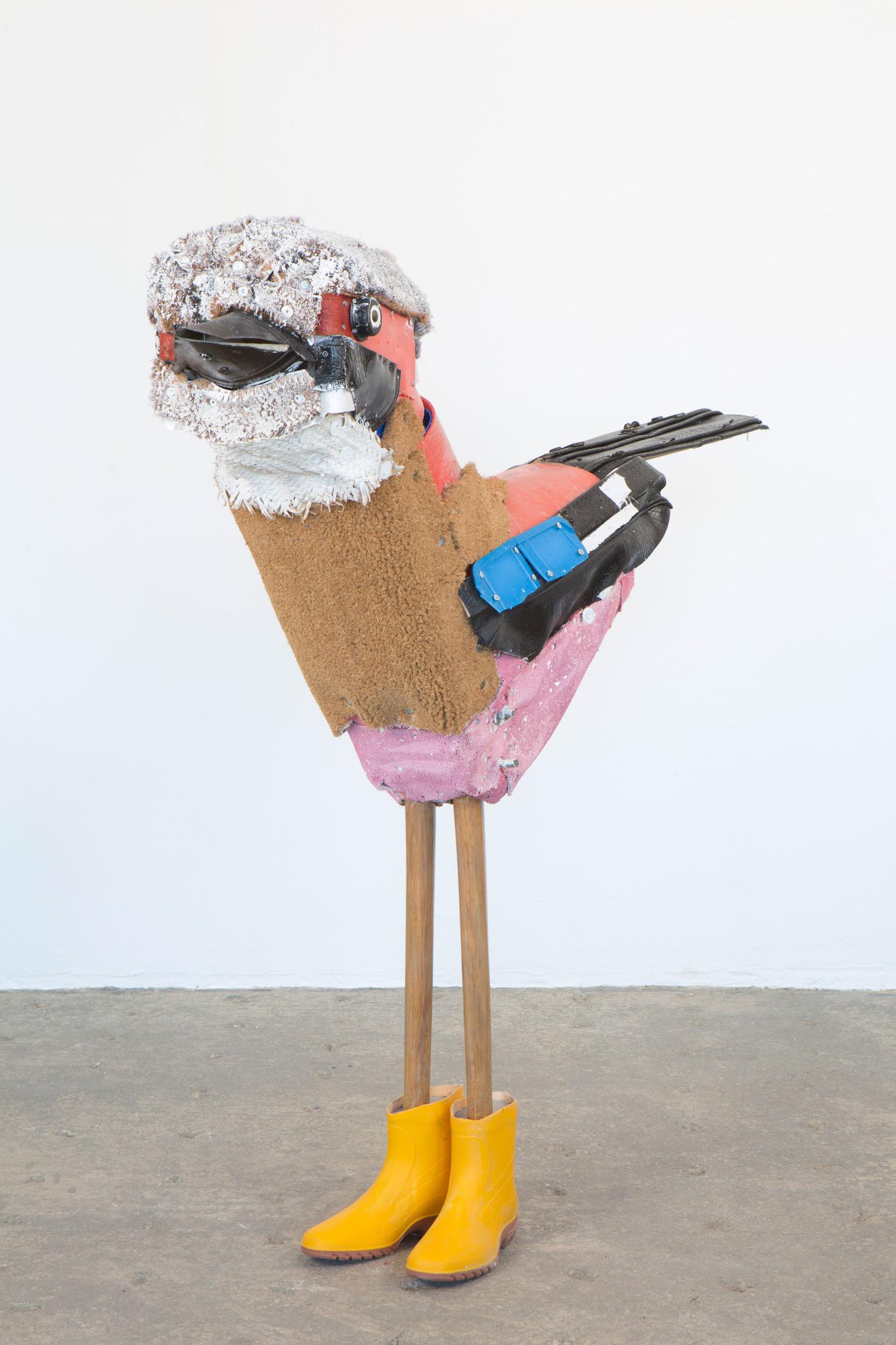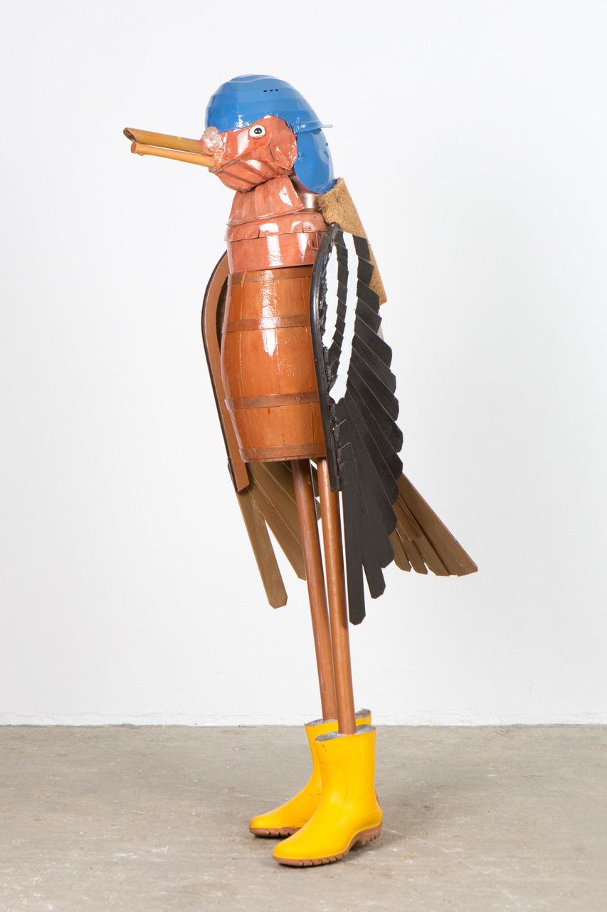 In seiner bisher größten Museumsausstellung sind zahlreiche Vögel, wie Drossel, Meise oder Kolibri mit Gummistiefeln – aber auch Grashüpfer, Biene und Schmetterling aus Bonbonpapier oder Kronkorken zu entdecken. Ergänzt wird die Schau durch Selbstporträts im Vogelgefieder und filmische Beiträge aus der Studienzeit, die in Argentinien entstanden sind.