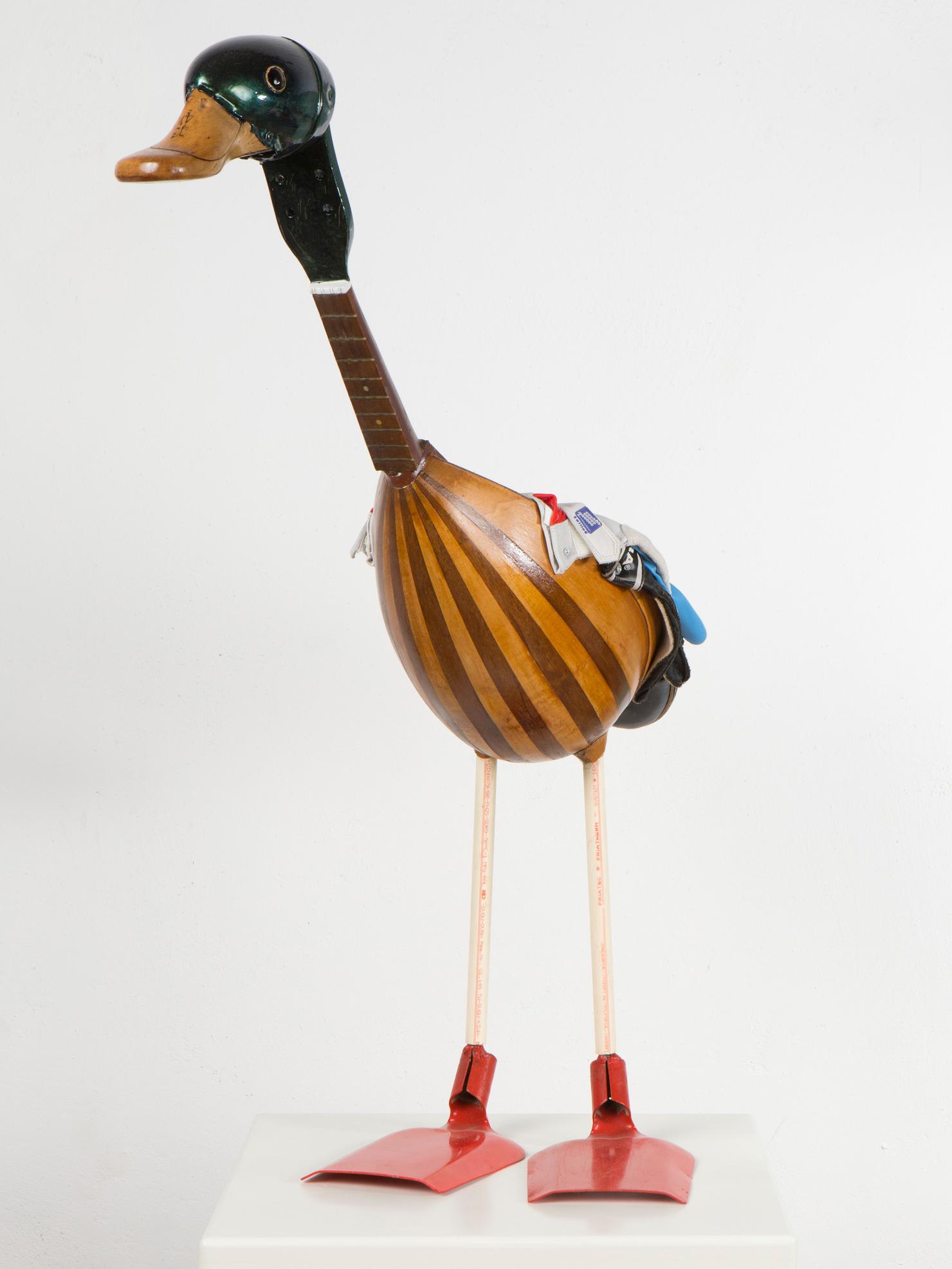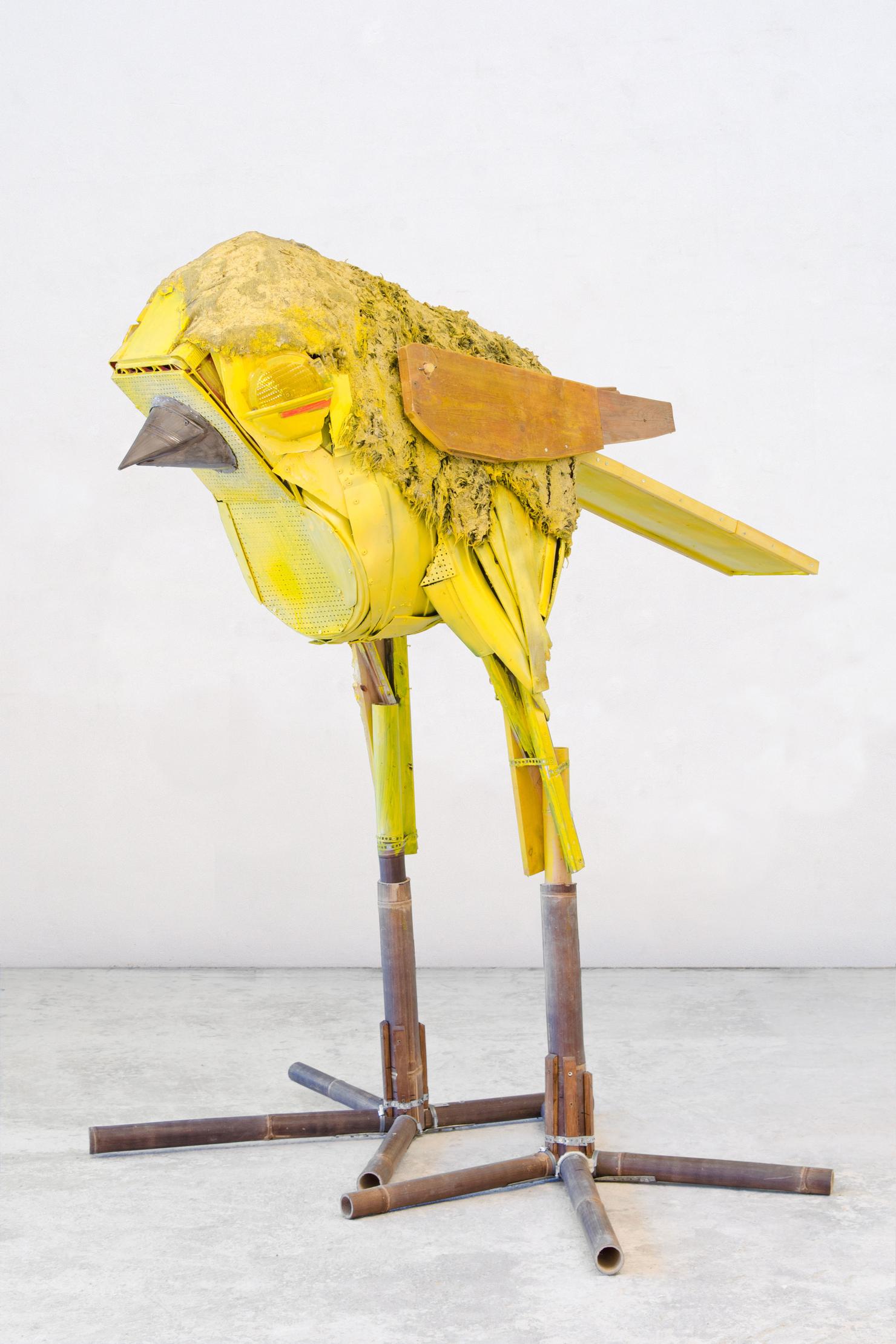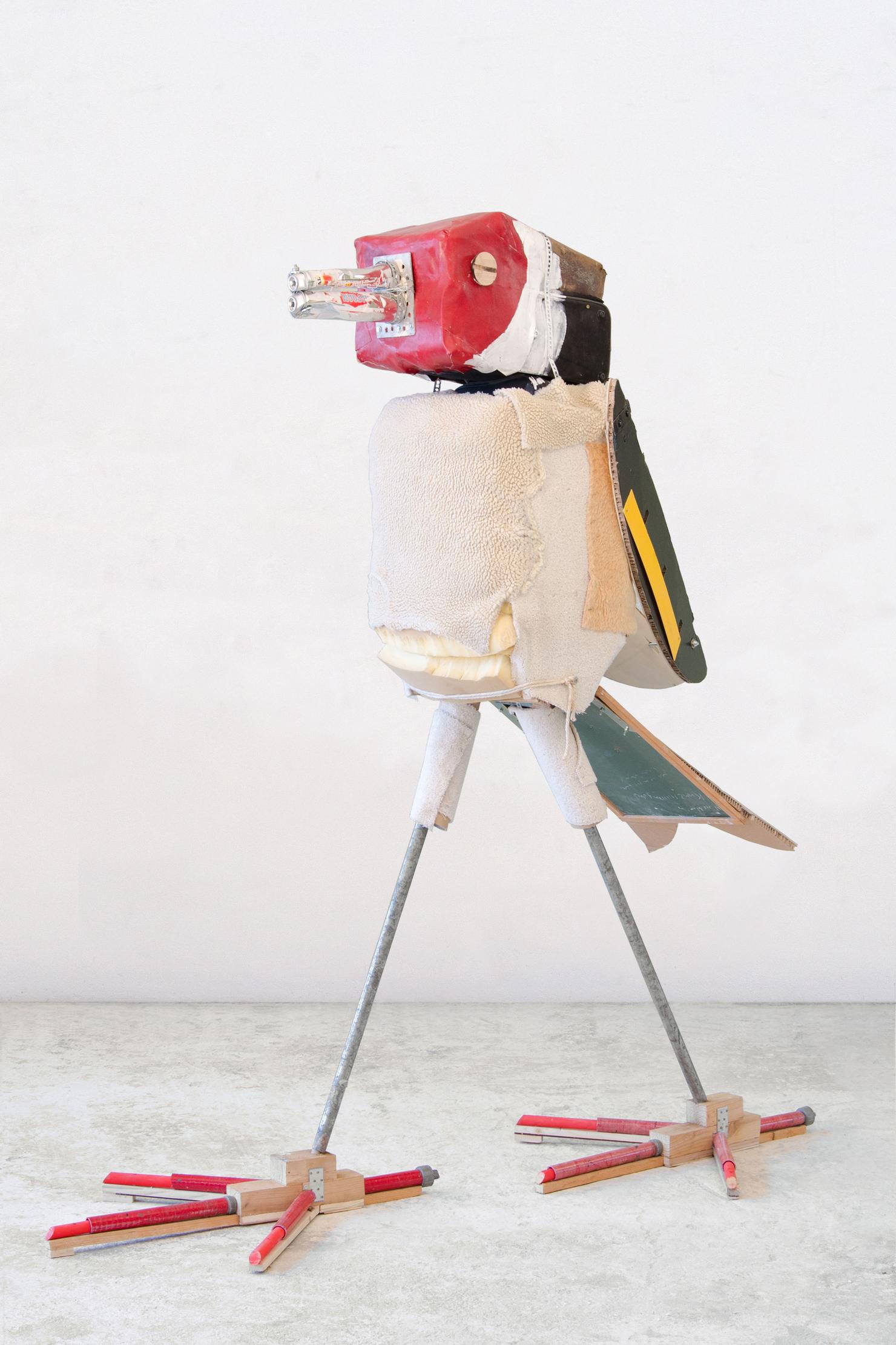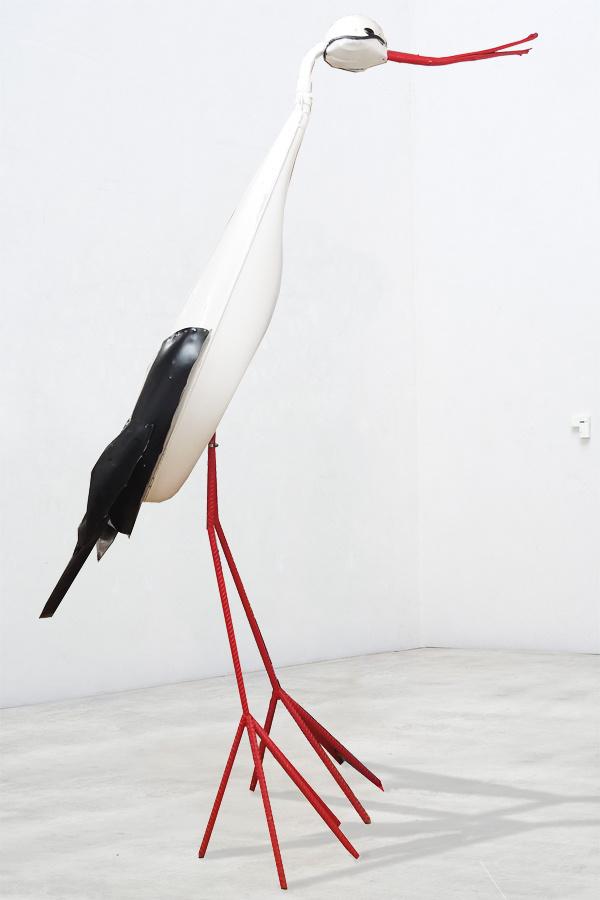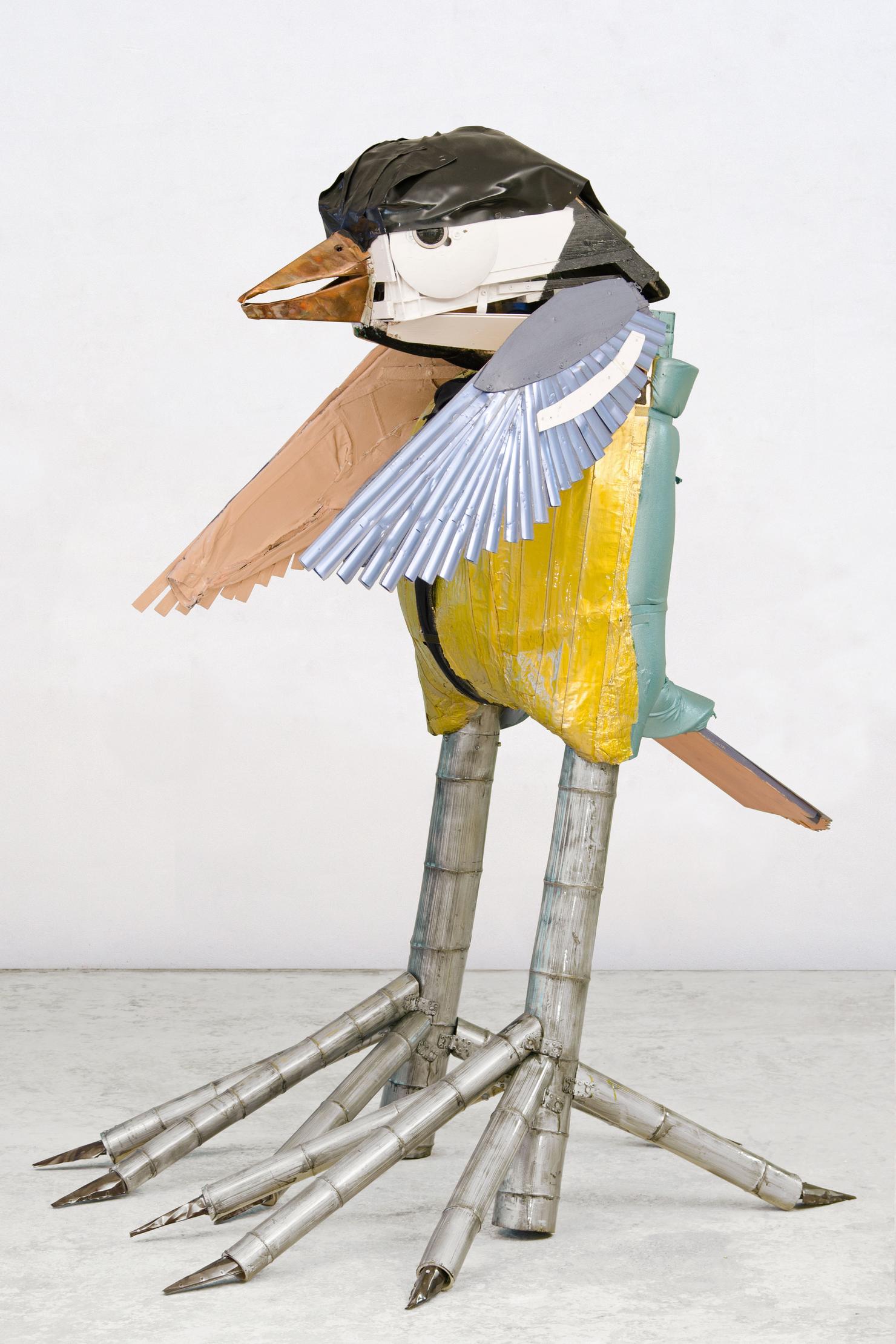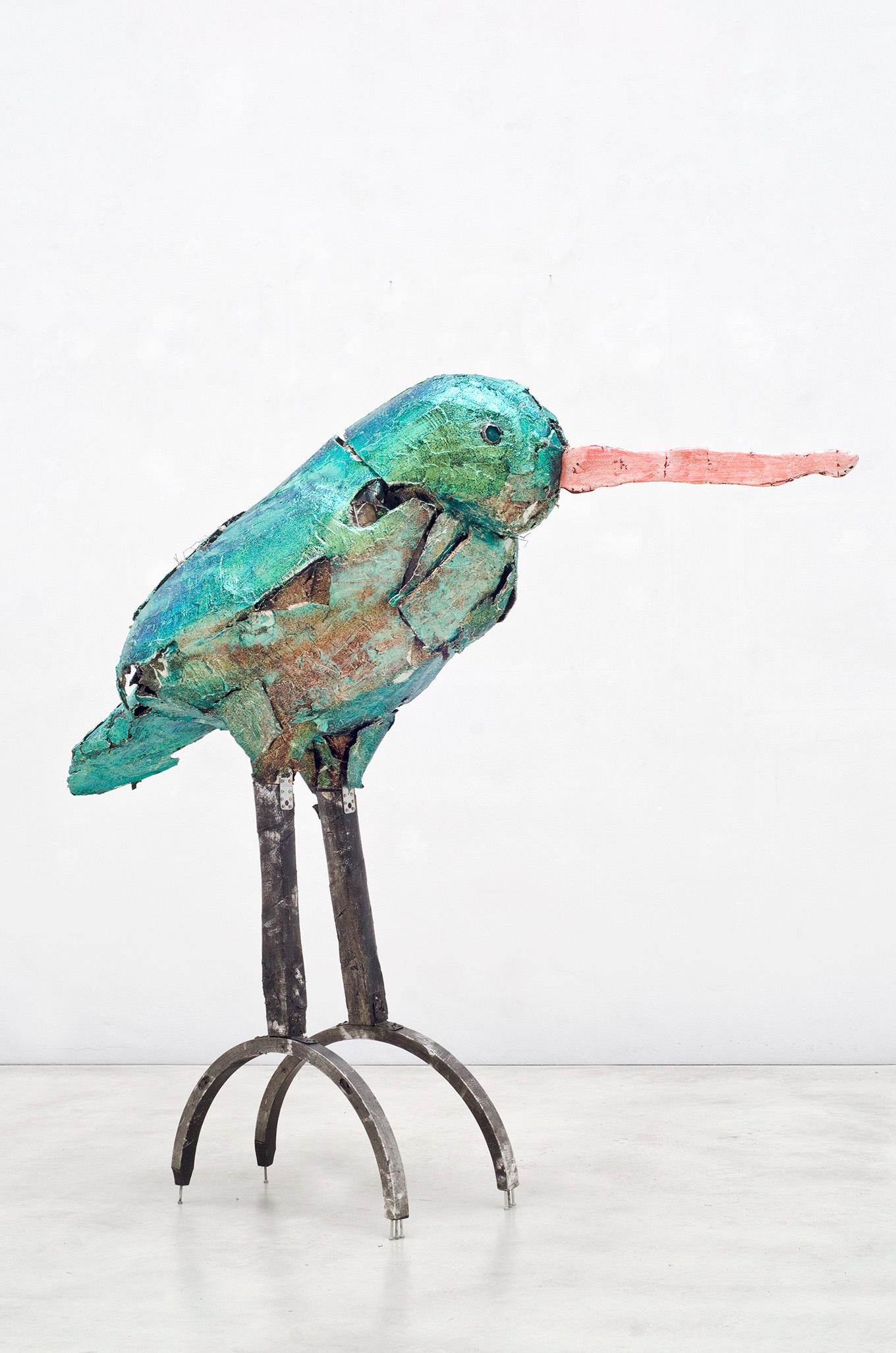 In seiner bisher größten Museumsausstellung sind zahlreiche Vögel, wie Drossel, Meise oder Kolibri mit Gummistiefeln – aber auch Grashüpfer, Biene und Schmetterling aus Bonbonpapier oder Kronkorken zu entdecken. Ergänzt wird die Schau durch Selbstporträts im Vogelgefieder und filmische Beiträge aus der Studienzeit, die in Argentinien entstanden sind.