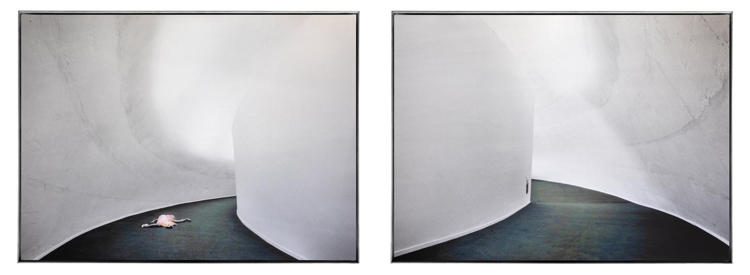 2 analoge Fotografien auf Aquarell-Papier handkoloriert, Edelstahlrahmen