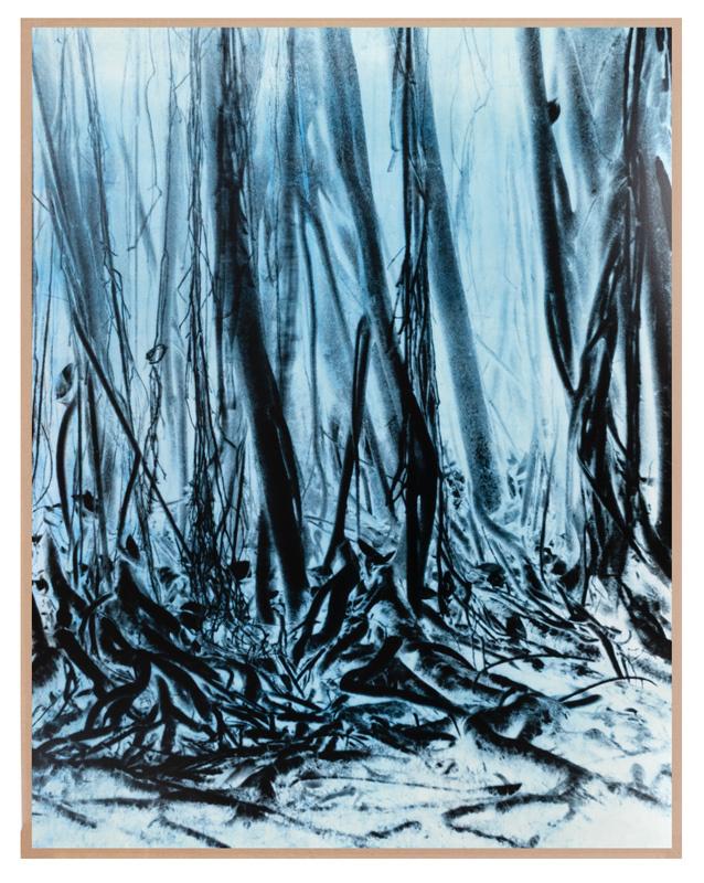 analoge Fotografie auf Silbergelatinepapier blaugetont, Holzrahmen mit Museumsglas