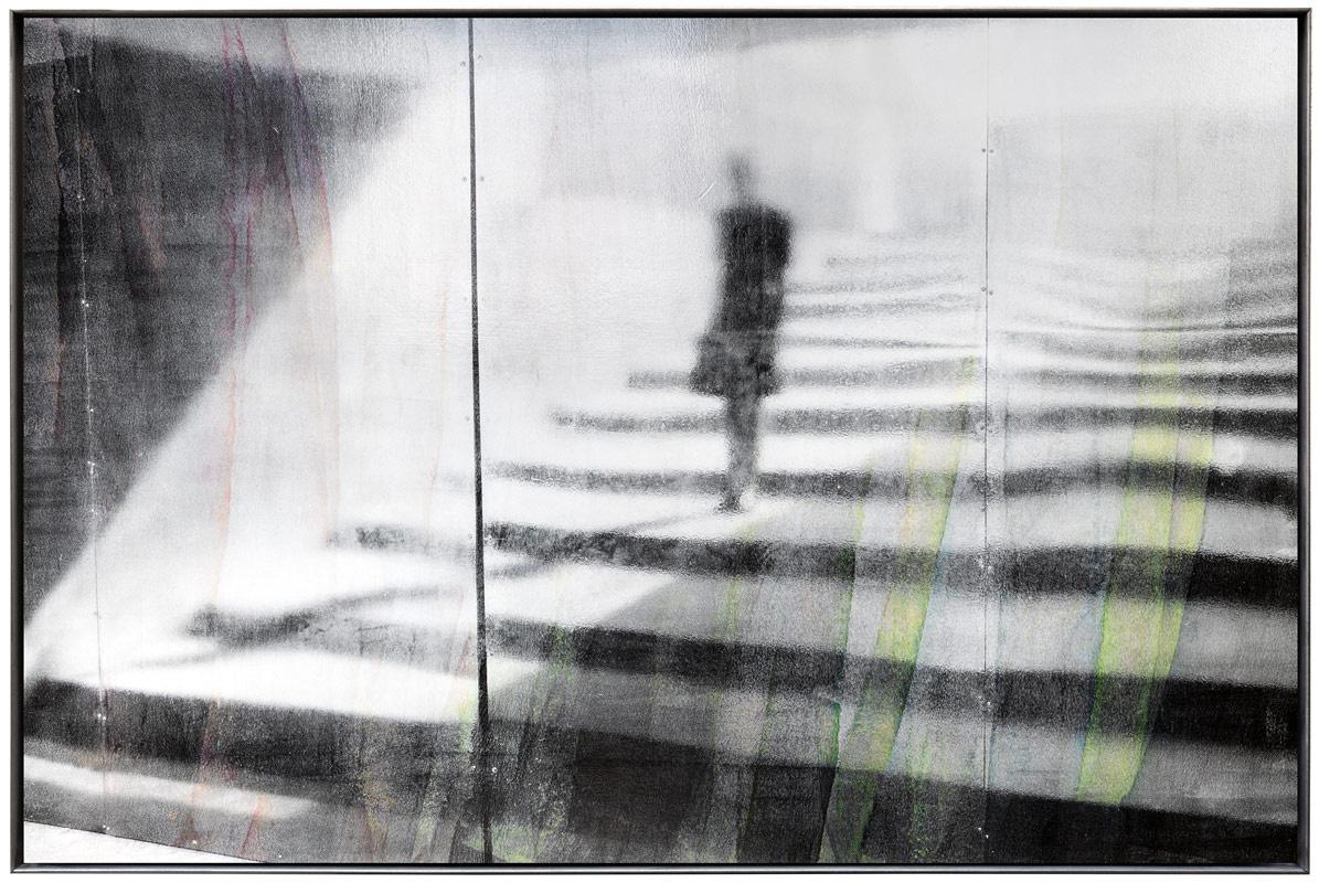 analoge Fotografie auf Faserzement handkoloriert, Edelstahlrahmen