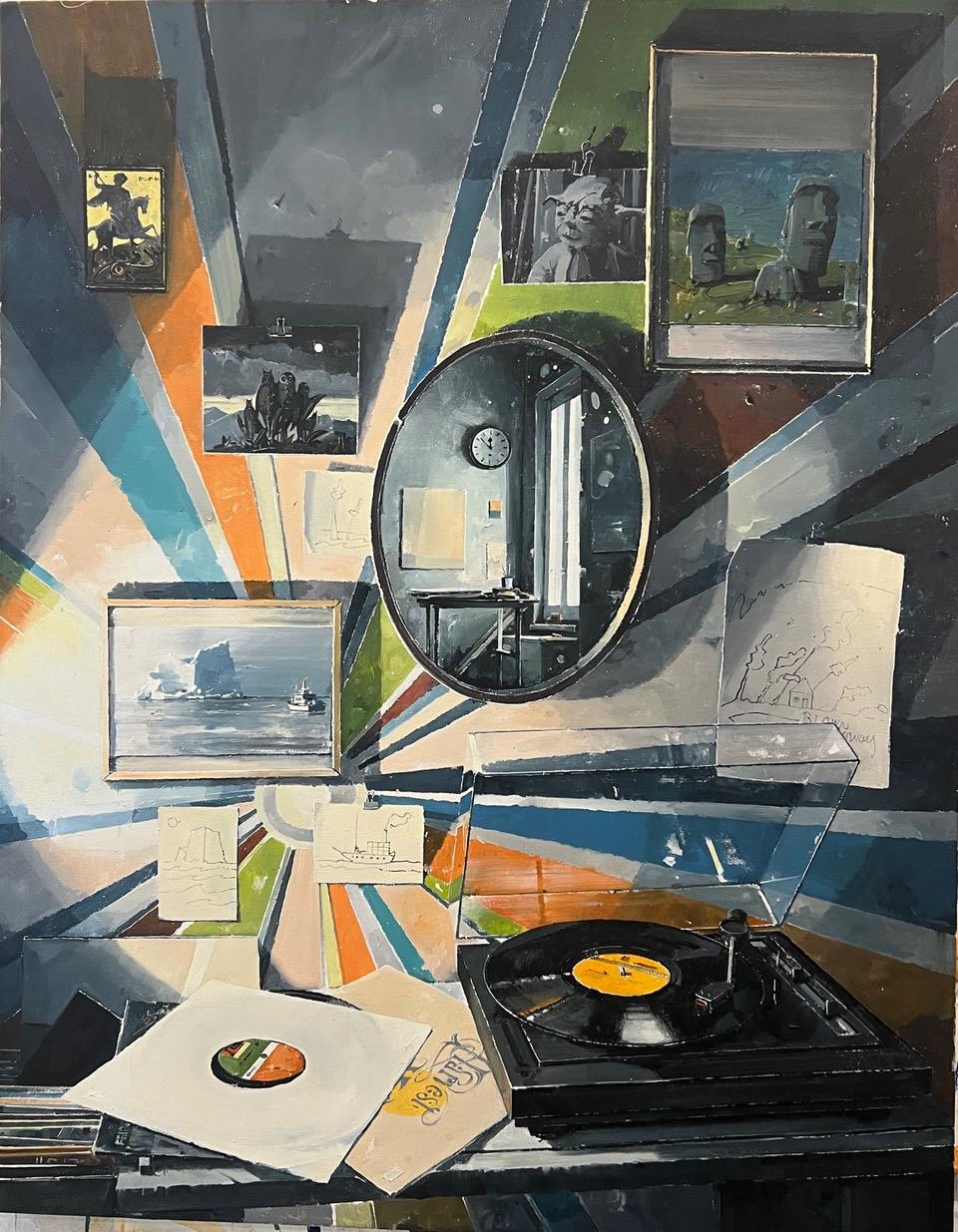 Spiegel, MDF, Pigment, Binder, Acryl, Pigmentdruck, Holzrahmen, Aluminiumrahmen (Künstlerrahmen), Museumsglas