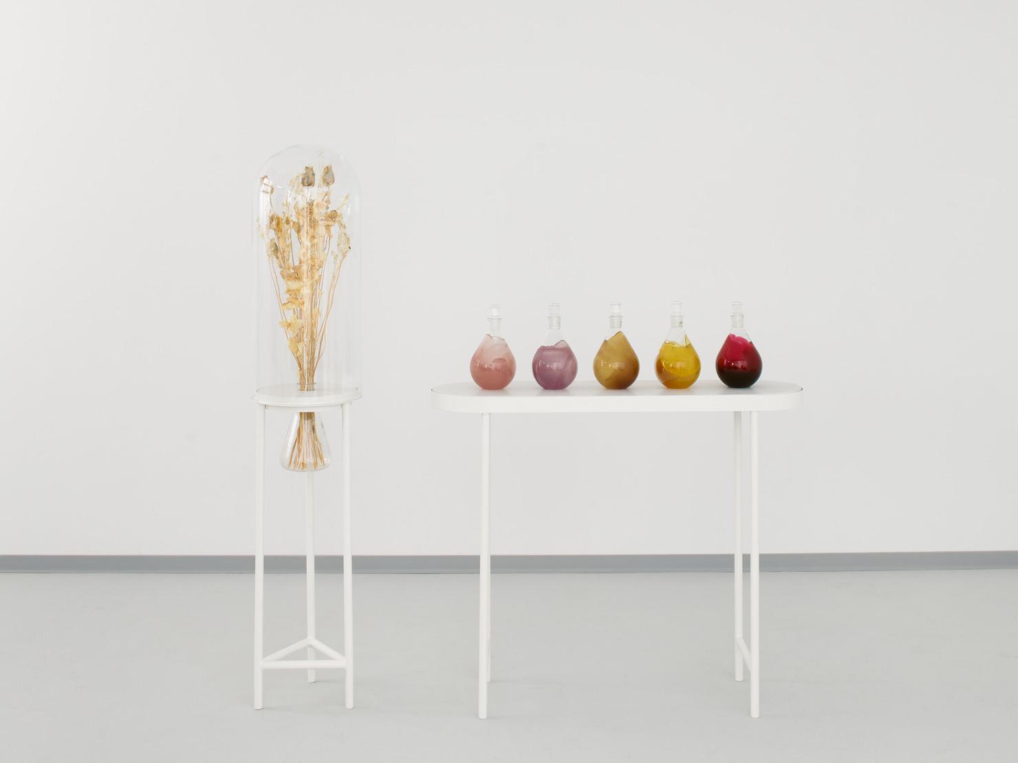 bleached bouquet and its distilled colours, isomalt, glass, metal, cement