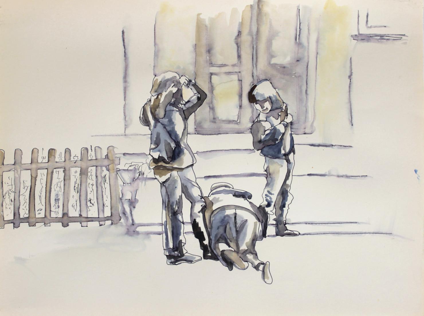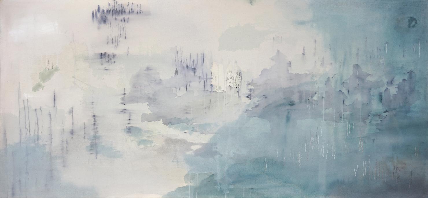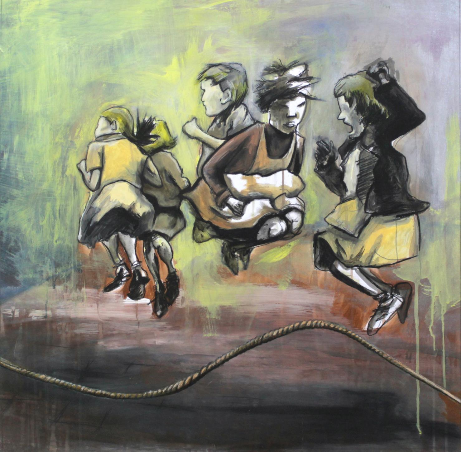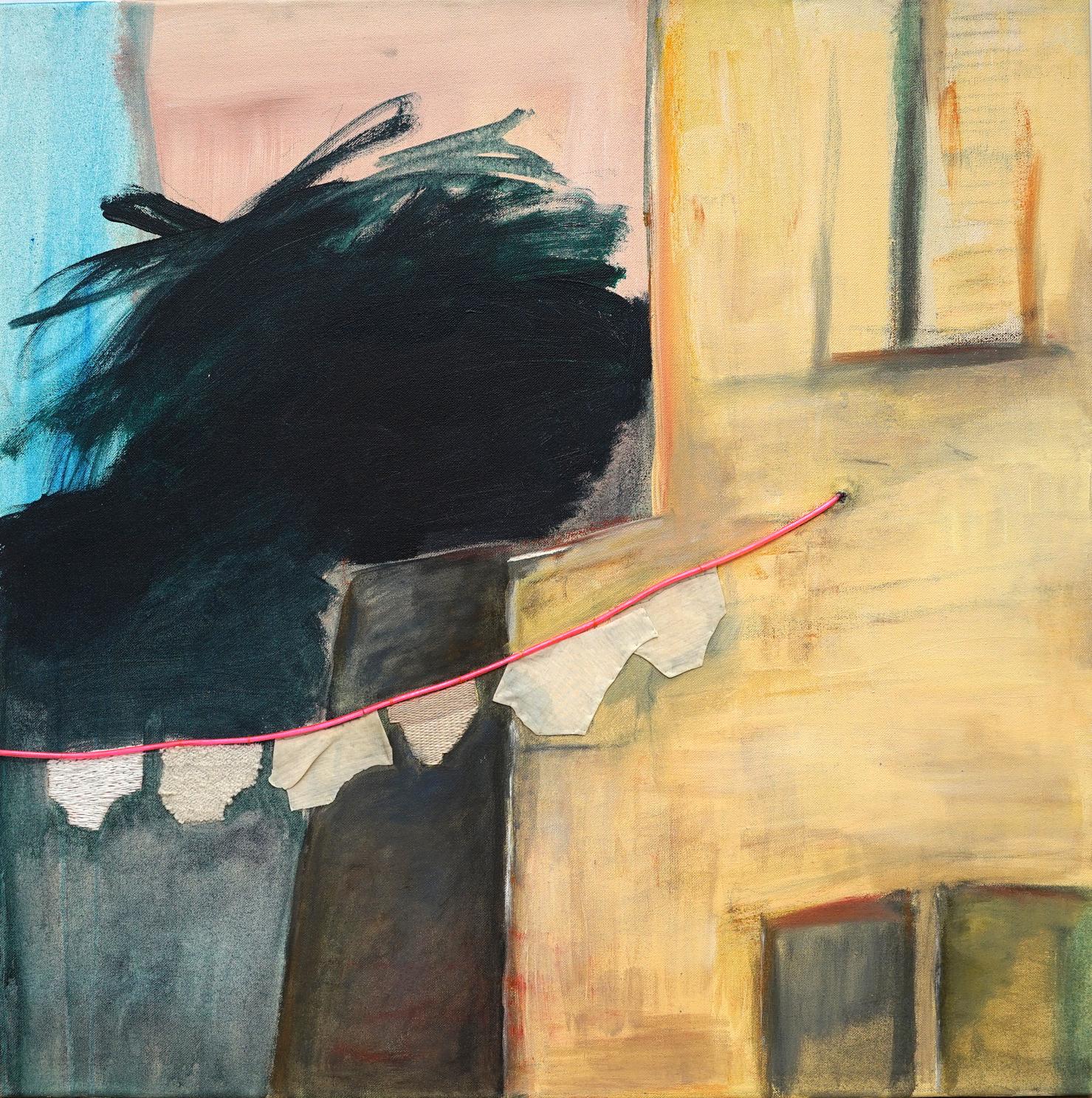 Acryl, Textil, Garn, Wäscheleine auf Leinwand