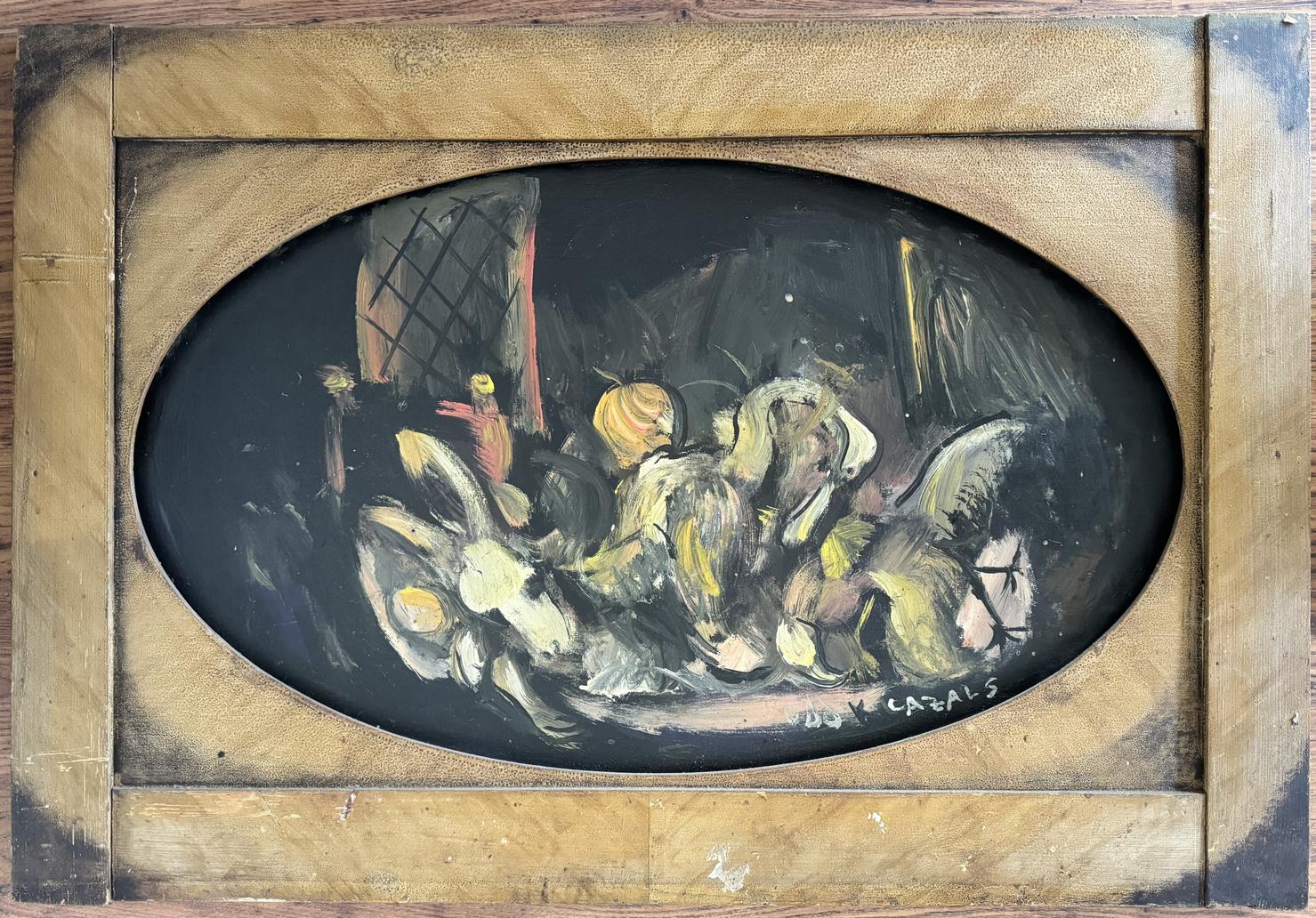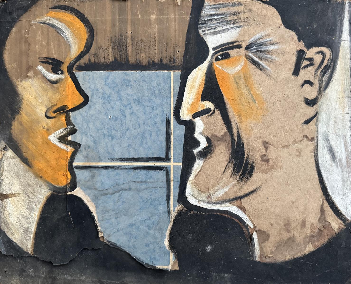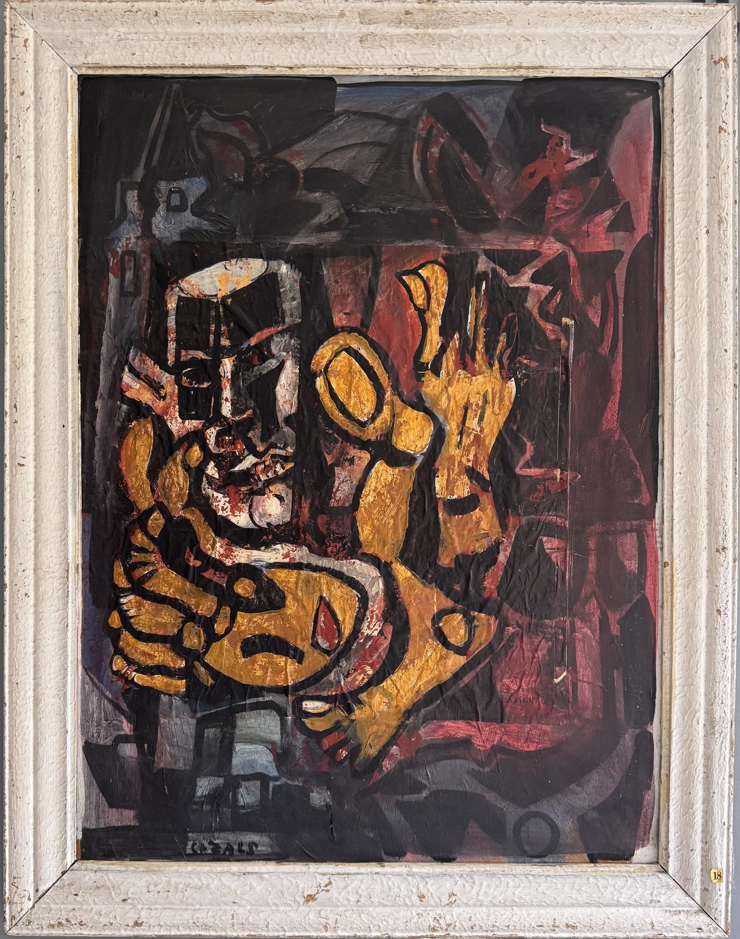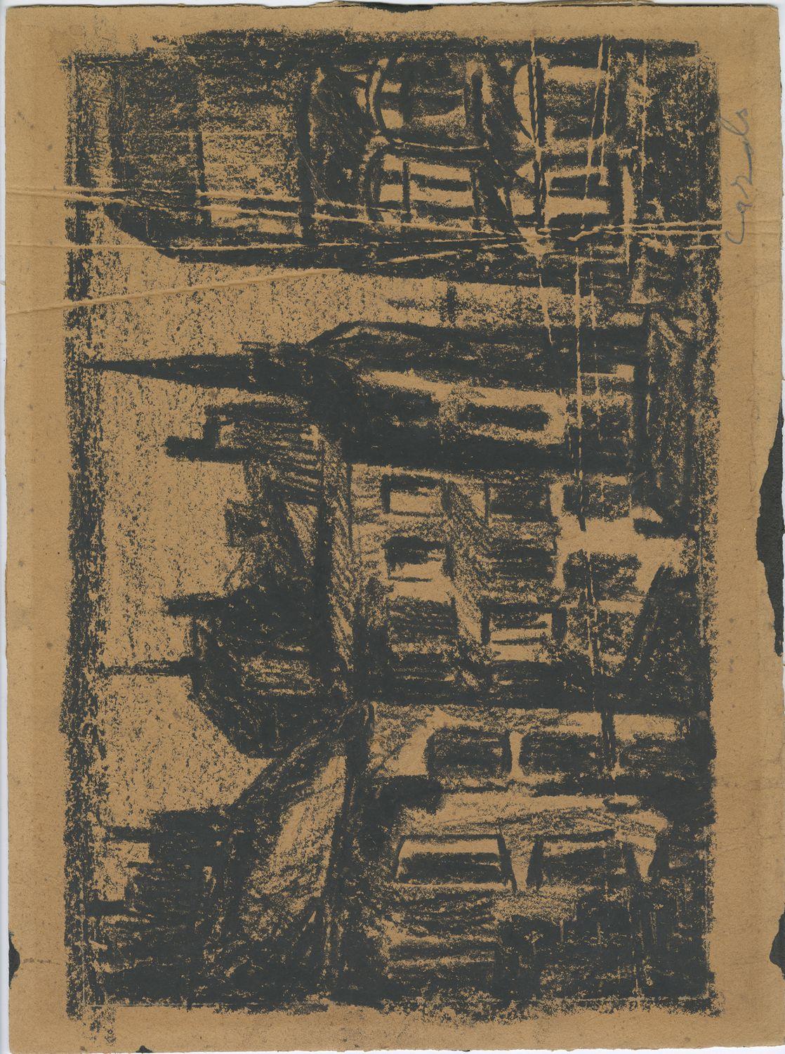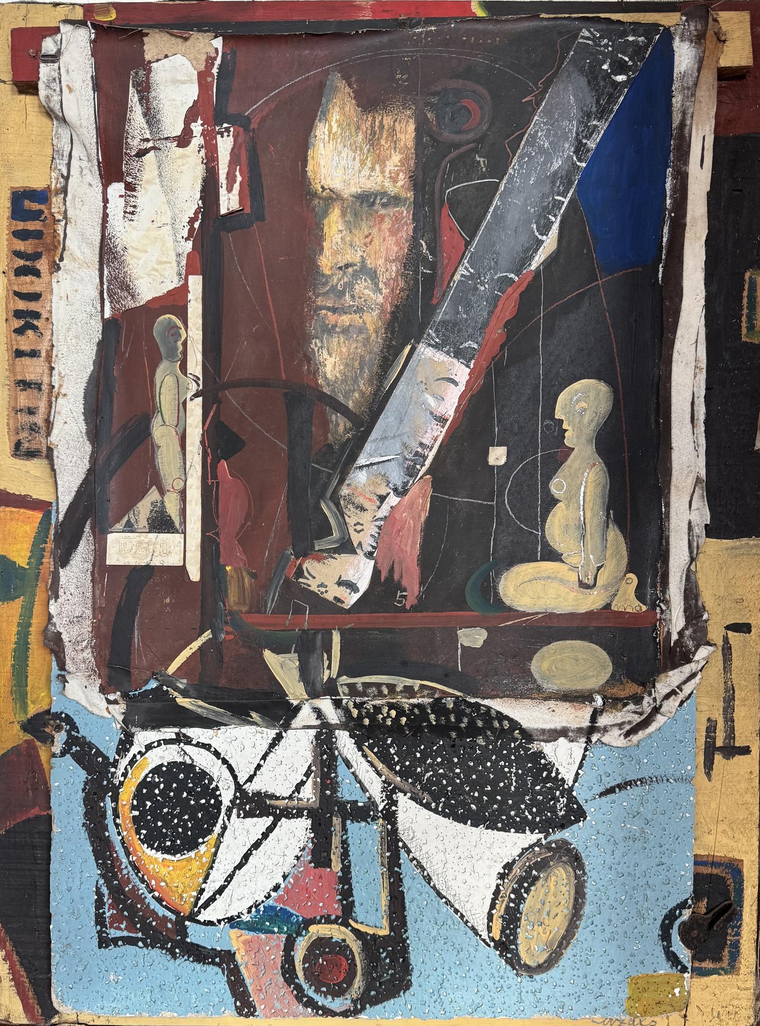 Mixed material on cardboard or wood