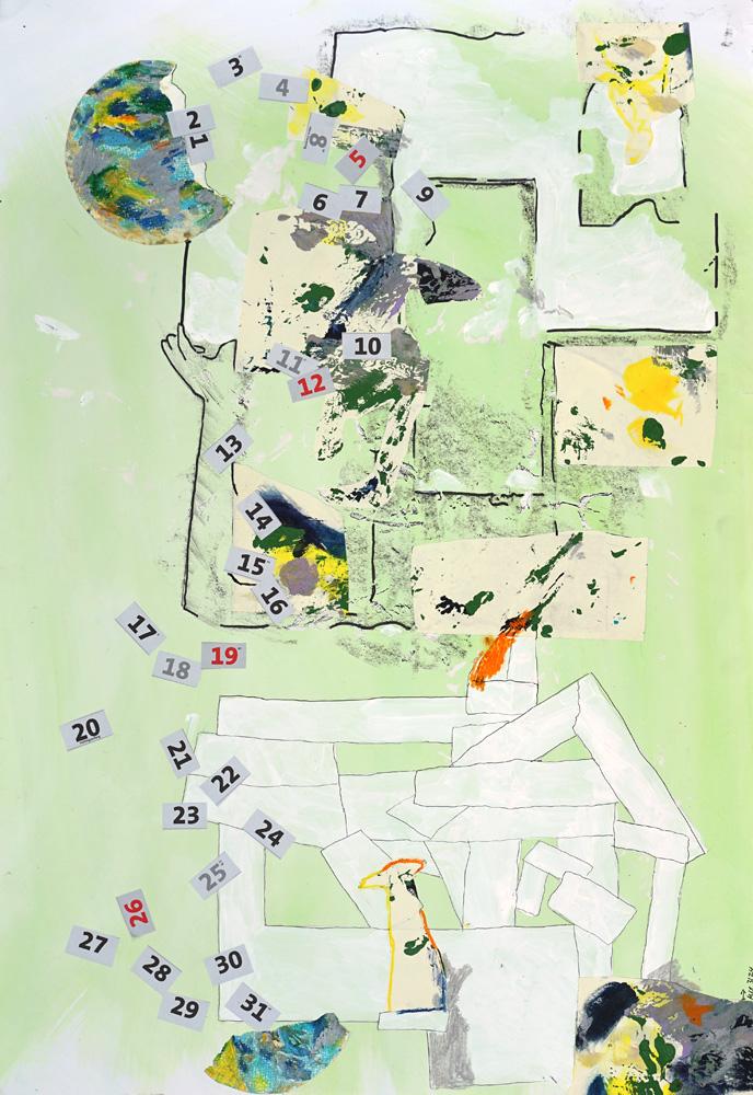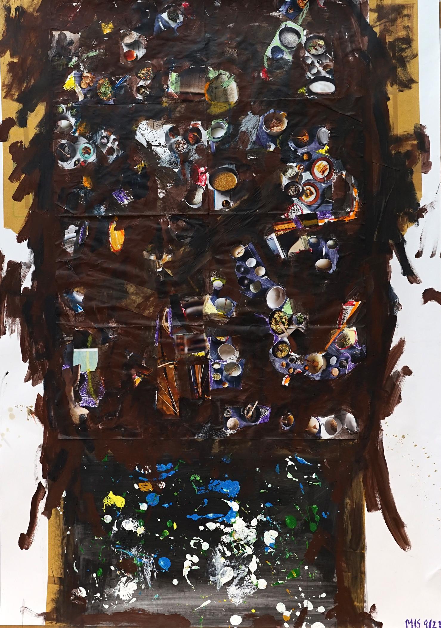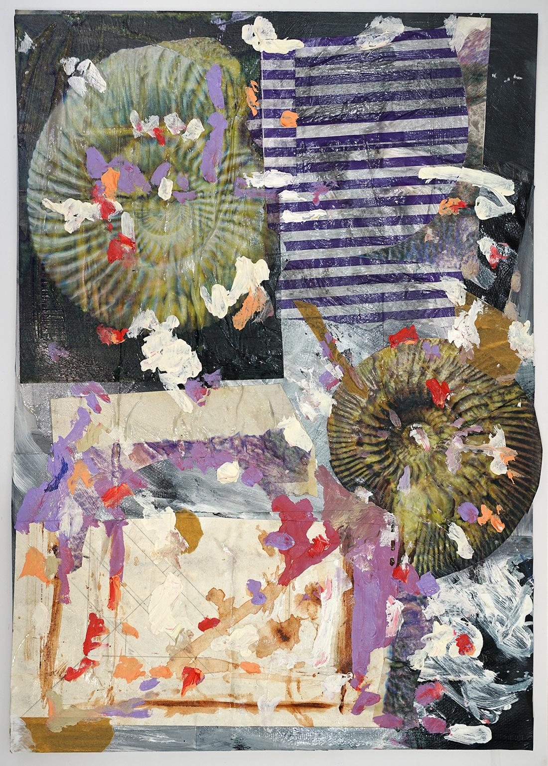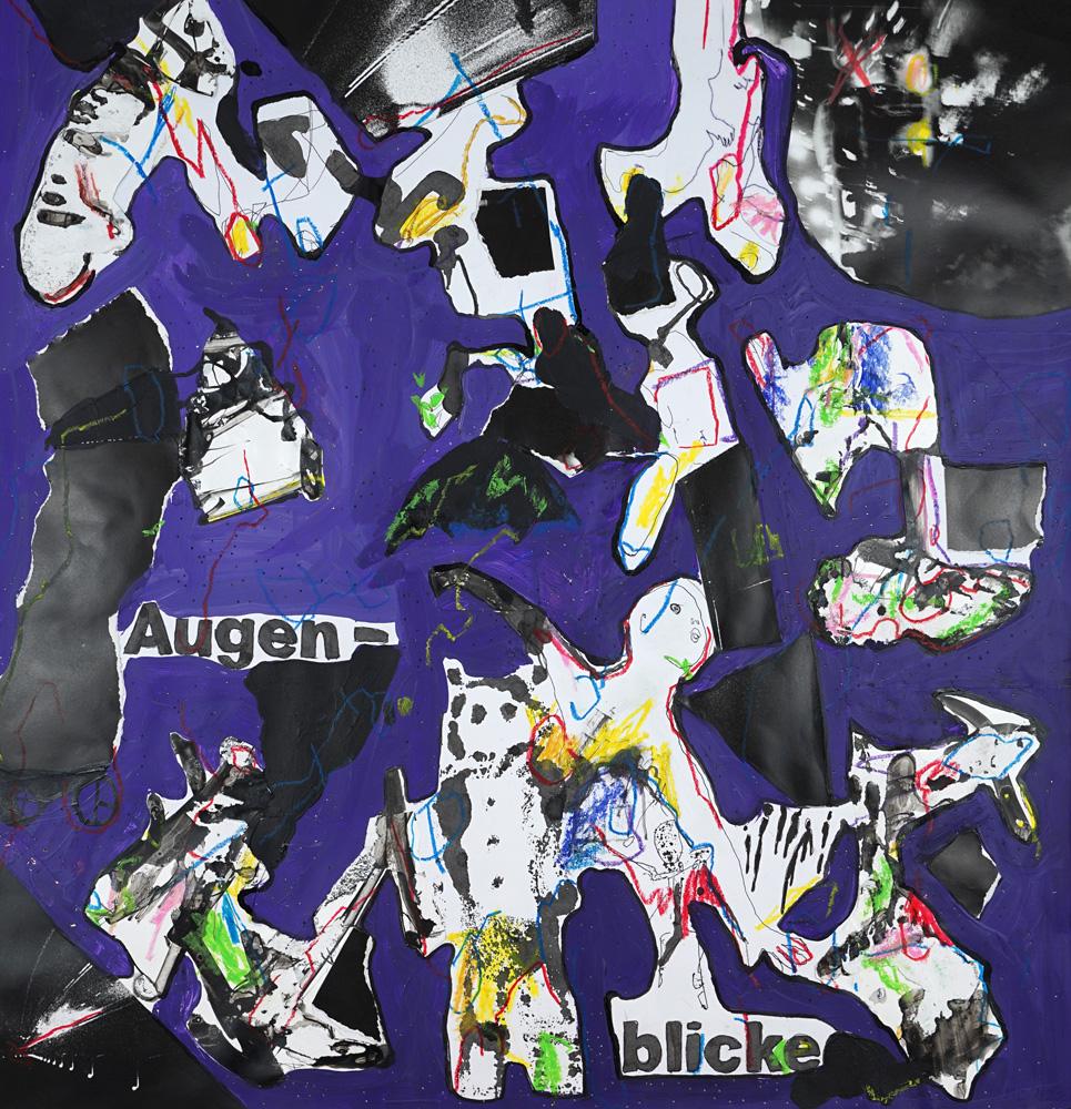 Acryl, Collage, Ölkreide auf Papier