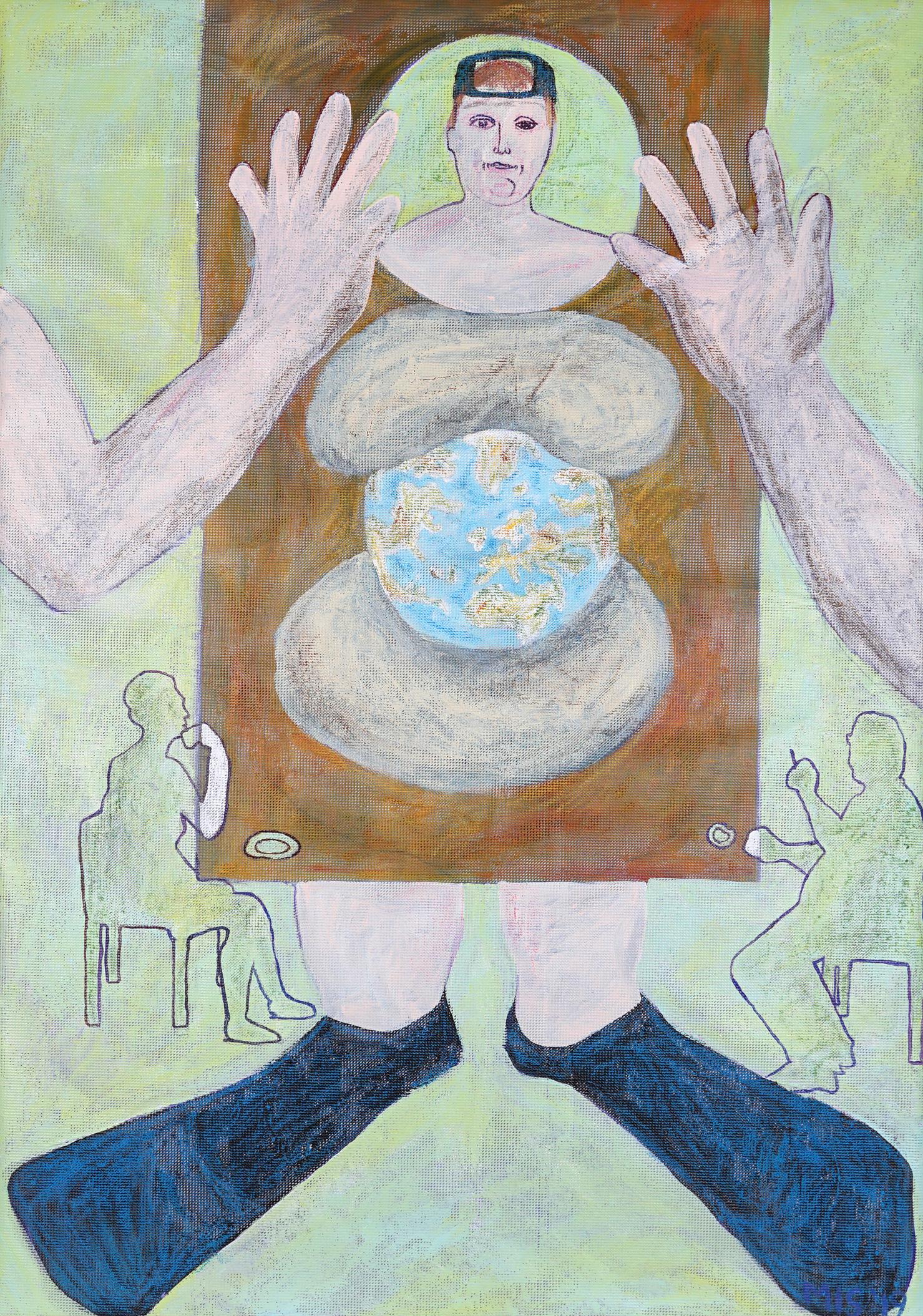 Acryl, Marker, Graphit, Ölkreide, Pastellkreide, Collage auf Leinwand