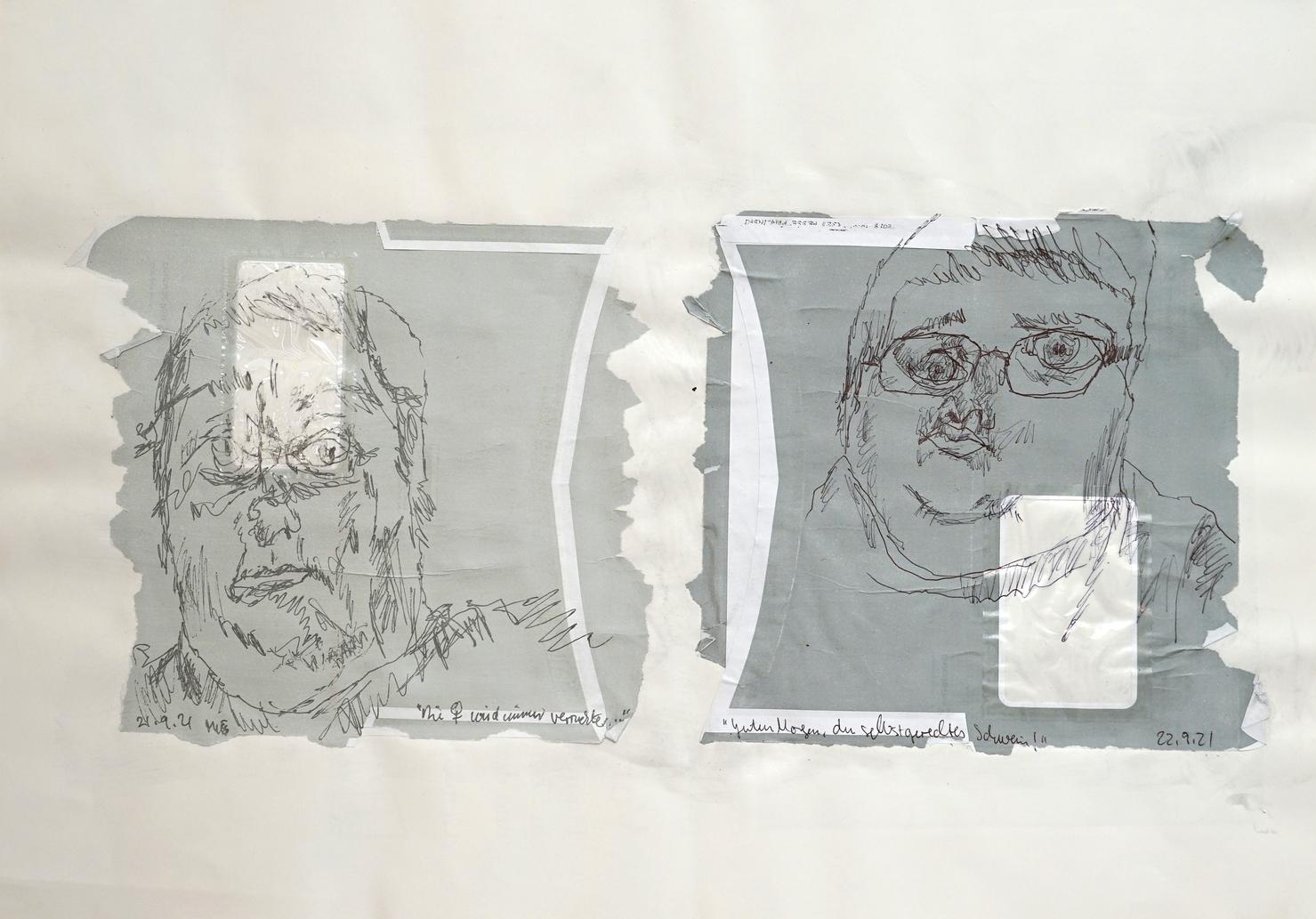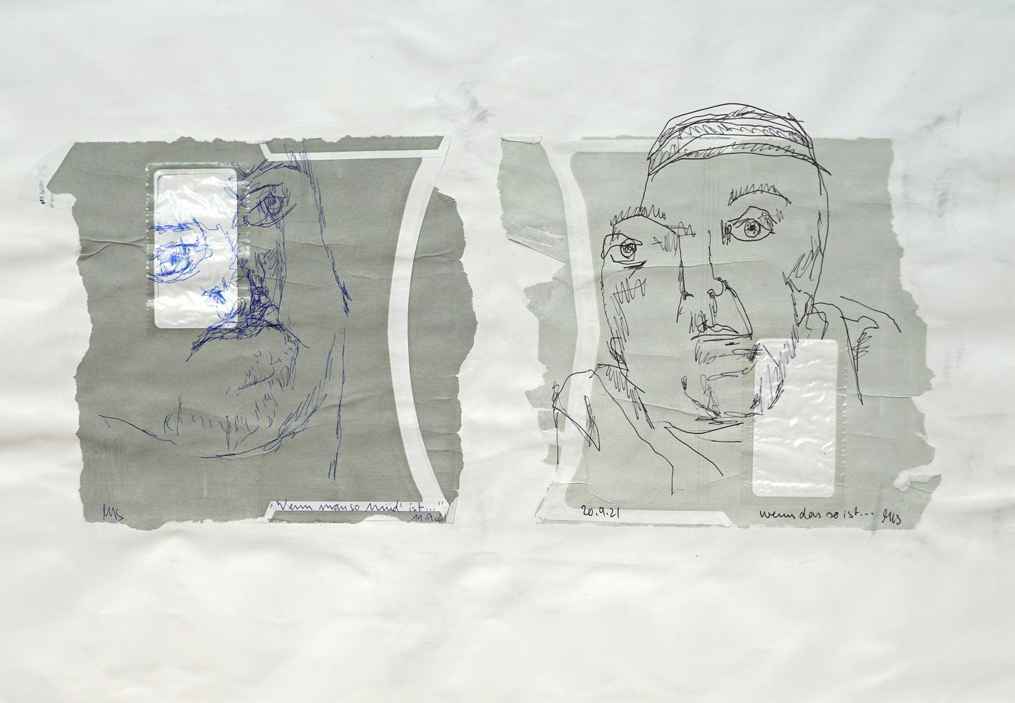 Kugelschreiber, Collage auf Papier