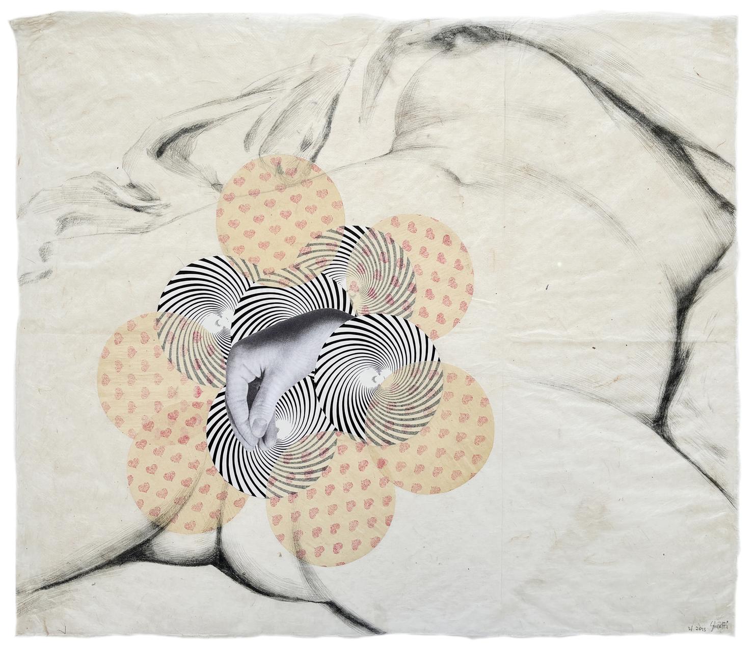Der Titel diesel kollektiven Wiener Schau scheint auf die Produktion dieser Künstlerin maßgeschneidert worden zu sein: „Haar“ — auch das Körperhaar mit einschließend. Unter allen ausgestellten Künstlern ist sie die einzige, und dies nicht erst jetzt, die es sich zur Aufgabe gemacht hat, in diesem gemeinsamen Signifikant (Haar) beide Signifikate mit einer entschieden post-strukturalistischen Strategie zu vereinen. Alles entsteht aus einem Puzzle von Kontaminierungen ersten Ranges: Genau am Geburtsort der Psychoanalyse — und ausgehend von einem Gemälde wie „Der Ursprung der Welt“, das lange Zeit von Jaques Lacan besessen und verehrt wurde, dem Psychoanalytiker, der die Originalität des Freudschen Denkens „neu erfand“ — gelingt es der Poetik von Michela Ghisetti, zahlreiche Elemente ins Spiel zu bringen, die letztlich in einer ebenso verwirrenden wie unerwarteten Entblößung der durch Eros verkörperten Verführung münden.