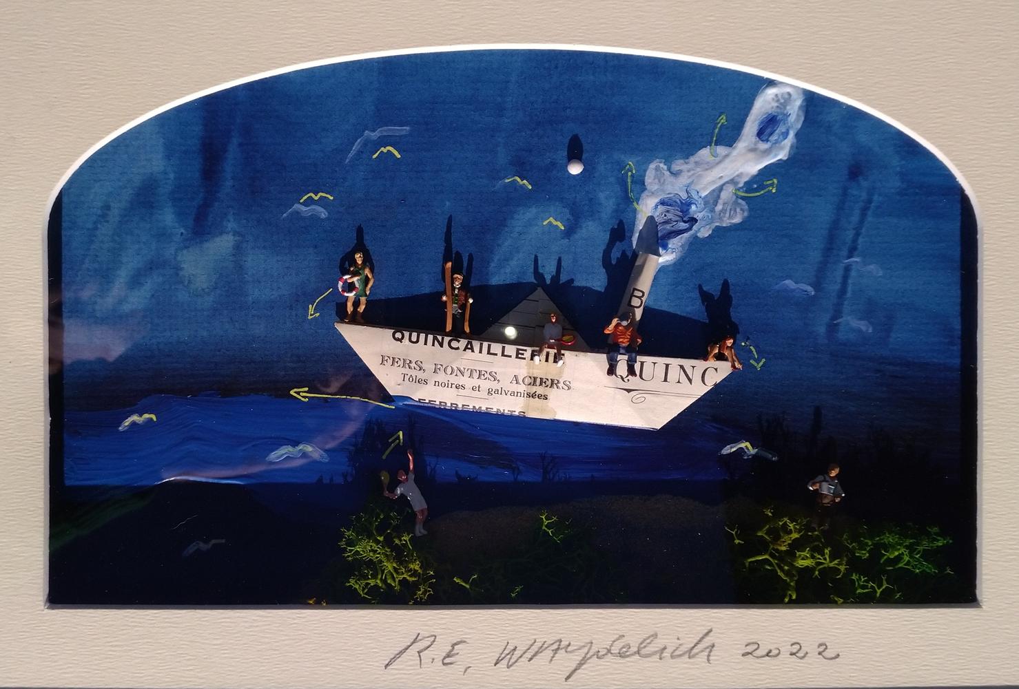 Roland Anstett erinnert an seine Aktion in Straßburg 1995: „Als Waydelich vor der Kathedrale, Place du Château, eine Betongruft mit Alltagsobketen füllte (Die Gruft der Zukunft 3790 n. Chr.), da bezeichneten ihn einige sogenannte kluge Köpfe der Intelligenzija auch als Doddel!“ wie Bis Repetita „Da schreibst du ‚E: siehe oben‘ hin, zurück zum Anfang, gleicher Text. Ich will nichts verändern.“ Er lacht. Und erzählt uns dann doch etwas über das E, dass für Émile steht und in seiner Signatur R.E. Waydelich vorkommt: „Am Anfang habe ich mit R signiert. Aber in meiner Familie gibt es 6 davon: Roger, Roland, Robert, usw. 1978 stand auf der ersten Seite der regionalen Elsässer Zeitung Dernières nouvelles d’Alsace: Roland Waydelich bei Biennale in Venedig! Das ist dann schon hart… Also habe ich mir gesagt okay, ich nehme den Vornamen meines Großvaters Émile und schreibe R.E. Der Buchstabe gehört immer dazu. Und außerdem ergibt das REW (rêve, zu Deutsch: Traum)! Das war keine Absicht. Ich konnte nicht meinen zweiten Vornamen nehmen, Marcel, wie mein Vater, das hätte zu sehr nach BMW geklungen!“ wie Linie Ich entdecke, dass seine blühende Fantasie streng Kurs hält.