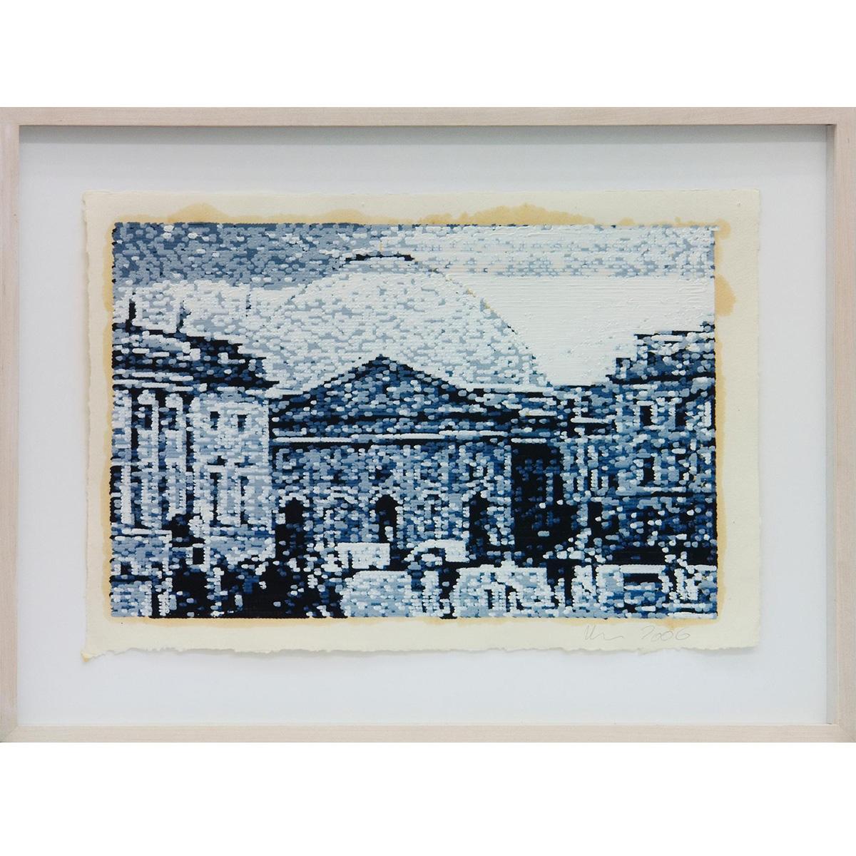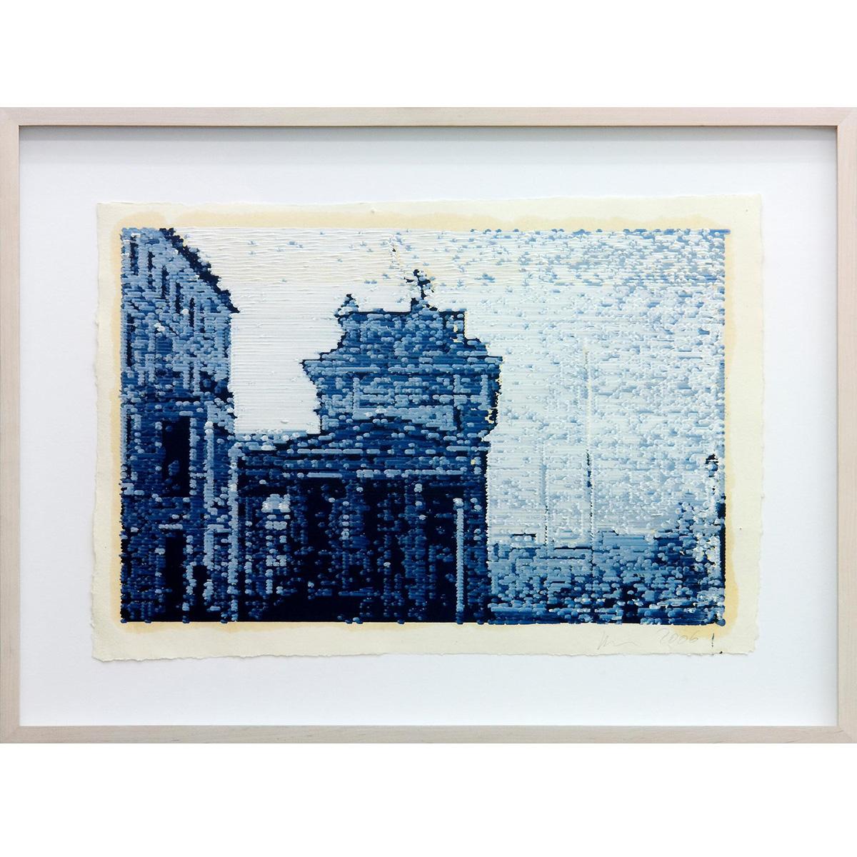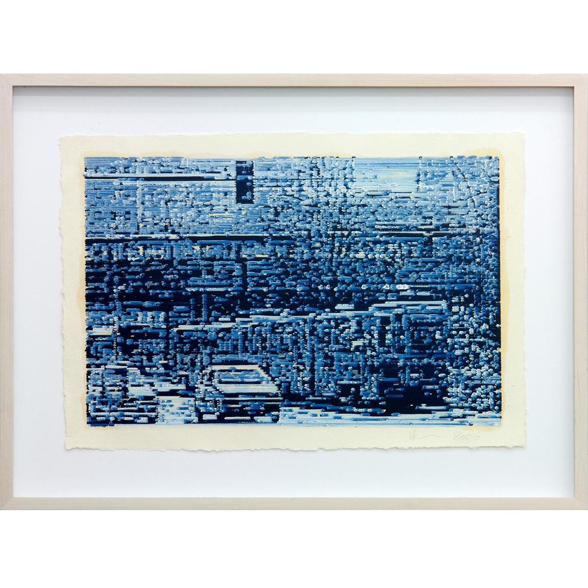 Holger Bär has spent many years developing and working with computer-controlled painting machines capable of transposing images, prepared in a certain way, onto canvas, pixel by pixel, brushstroke by brushstroke. For the purposes of encoding his images Bär has always relied on numbers as placeholders for colors, using certain algorithms to visually process them. By way of a music project where scores were to be transposed into colors, thus creating complex abstract images, Bär arrived at the idea of basing a series of abstract paintings on the numbers of the lottery. In certain instances the numbers from 0 to 9 were each accorded one of ten specific colors, in others all numbers from 1 to 49 were quantified and also painted in ten colors. Using various formats, the artist thus programmed his painting machines to paint all the numbers from the inception of the lottery drawings, supplementing these with works based on other number sequences, such as "Numbers from the Business Report of the Dürr AG from 1998 through 2003." Unlike in Bär's other, usually figurative, paintings, we here encounter an echo of John Cage's use of chance as a compositional method for the avoidance of personal taste. At the same time Bär is playing with the themes of coding/decoding and the presence of deep structures and laws beneath seemingly chaotic appearances, structures not recognizable at the surface without the corresponding key.