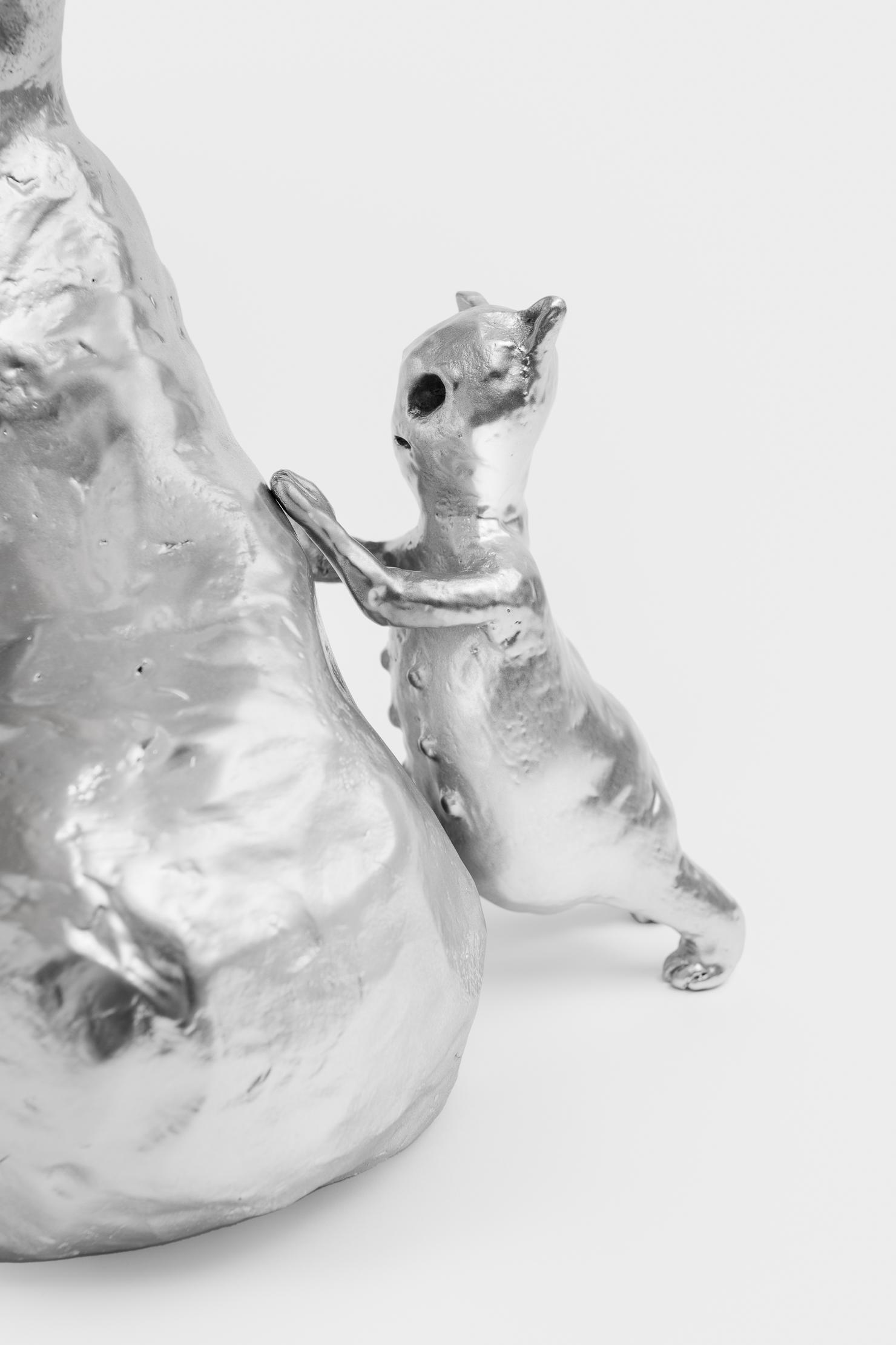 Artist Jennie Bringaker (b. 1978, Oslo) lives and works in Strømmen, Norway. She holds a BFA from the Norwegian Theatre Academy at Østfold University College and an MFA in Studio Art from New York University. Known for her bold sculptural explorations, Bringaker's work reflects her background in performance. Focused primarily on the female form, her sculptures delve into the intricacies of femininity, exploring how the idea of the feminine is perceived through form, materials, and artistic techniques. Her figures blur the boundaries between human and animalistic traits, challenging conventional notions of femininity as both endearing and domesticated, while also being sexualized and unruly. Bringaker's thought-provoking investigations into femininity and human-animal relationships has garnered attention both nationally and internationally. Notable works and exhibitions include "Overwhelmed" (a performance featured in the exhibition "Louise Bourgeois: Imaginary Conversations" at The National Museum, Oslo, 2023), "Outsiders" (Femtensesse, Oslo, 2023); the "Hannah Ryggen Triennale 2022" (National Museum of Decorative Arts and Design, Trondheim, 2022); "Pint sized riot at the silent Retreat" (Kunstnerforbundet, Oslo 2022); "Lay Me Low" (Nitja Center for Contemporary Art, Lillestrøm, 2021); and "Pillow talk Bestiary" (The Association of Norwegian Sculptors, Oslo, 2019). In 2025 Bringaker will be participating in a group exhibition at Frac Champagne-Ardenne in Reims, France. Her work has also been showcased at prestigious international venues such as Liste Art Fair Basel and Paris Internationale. Bringaker’s work is included in the collections of Frac Champagne-Ardenne, Reims, The National Museum of Norway, Oslo, Haugar Art Museum, Tønsberg, The National Museum of Decorative Arts and Design, Trondheim, The City of Oslo Art Collection and KORO – Public Art Norway.