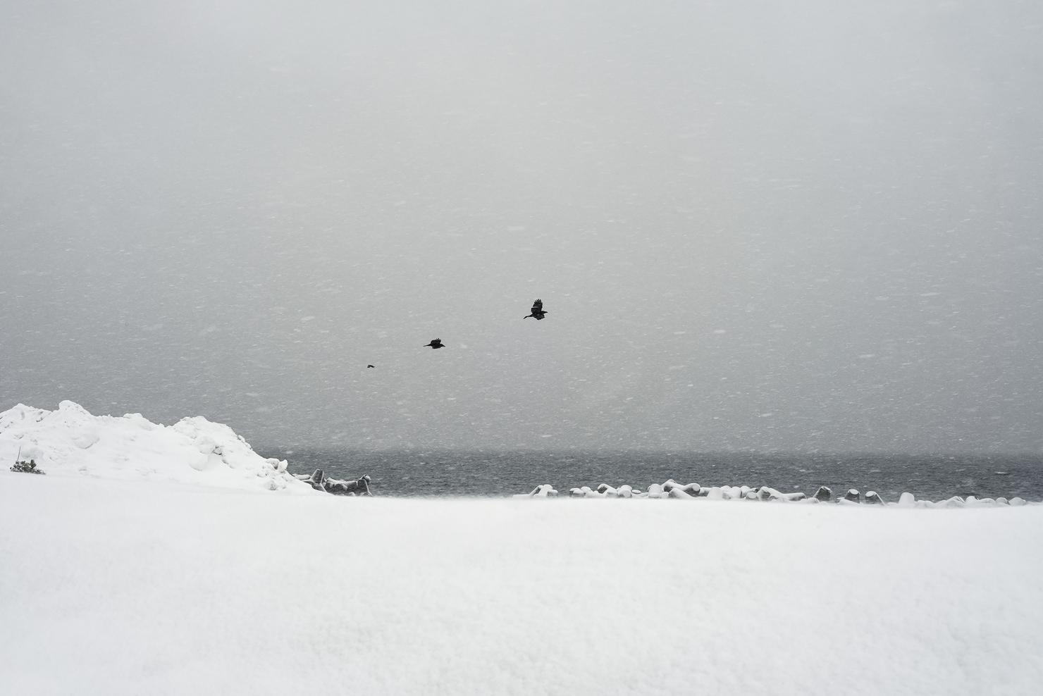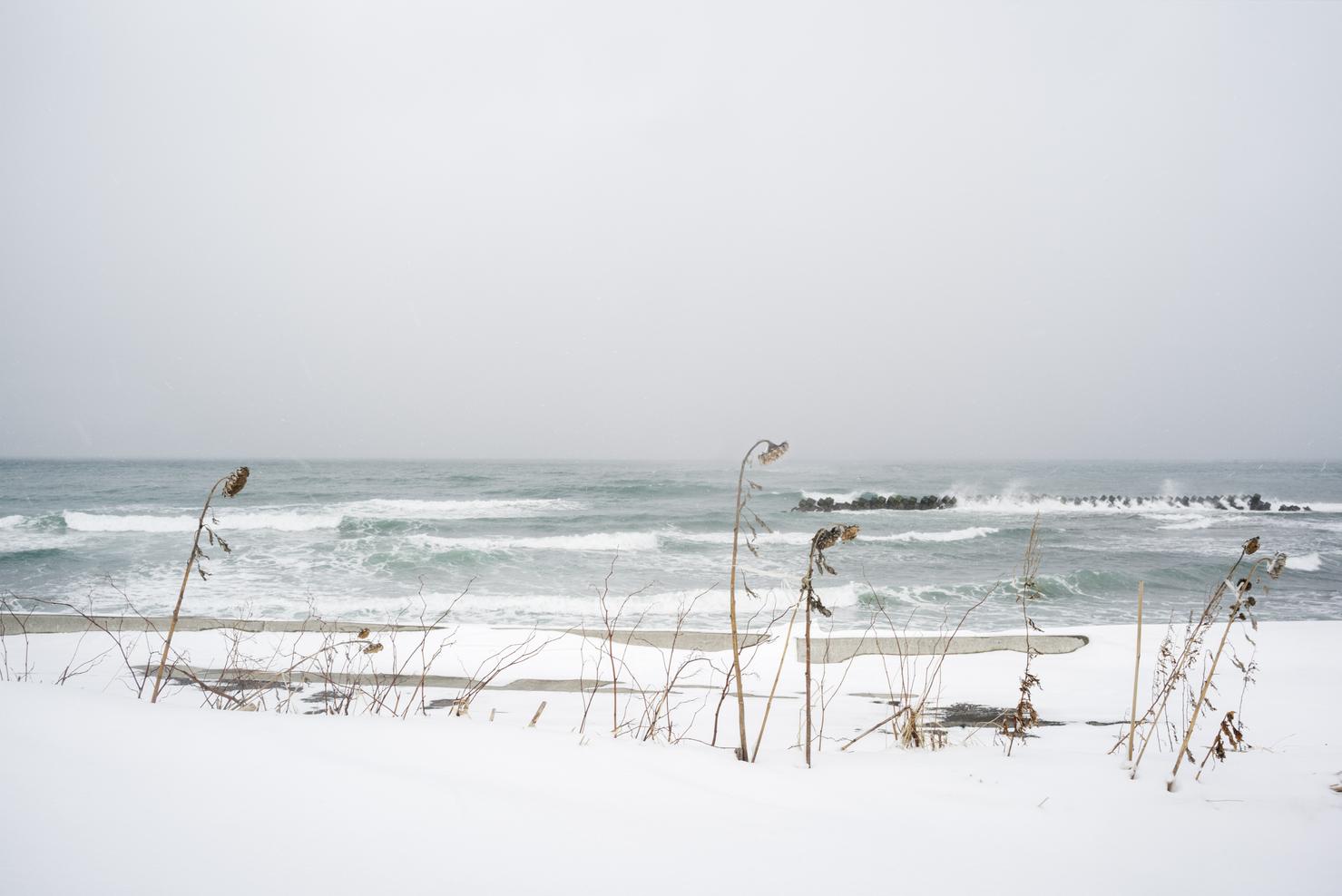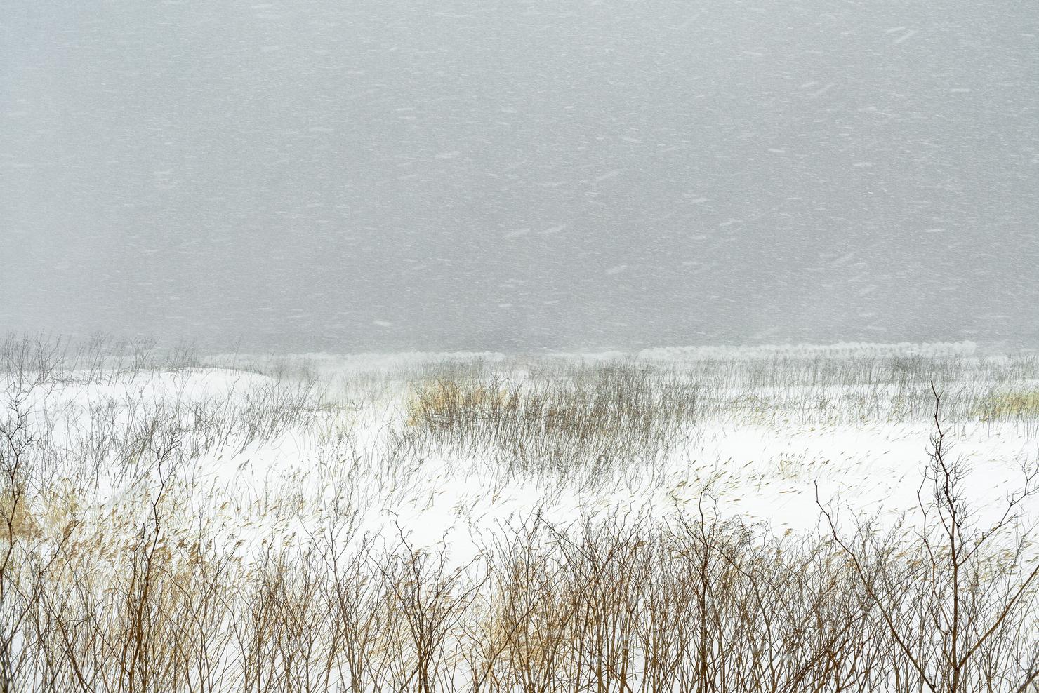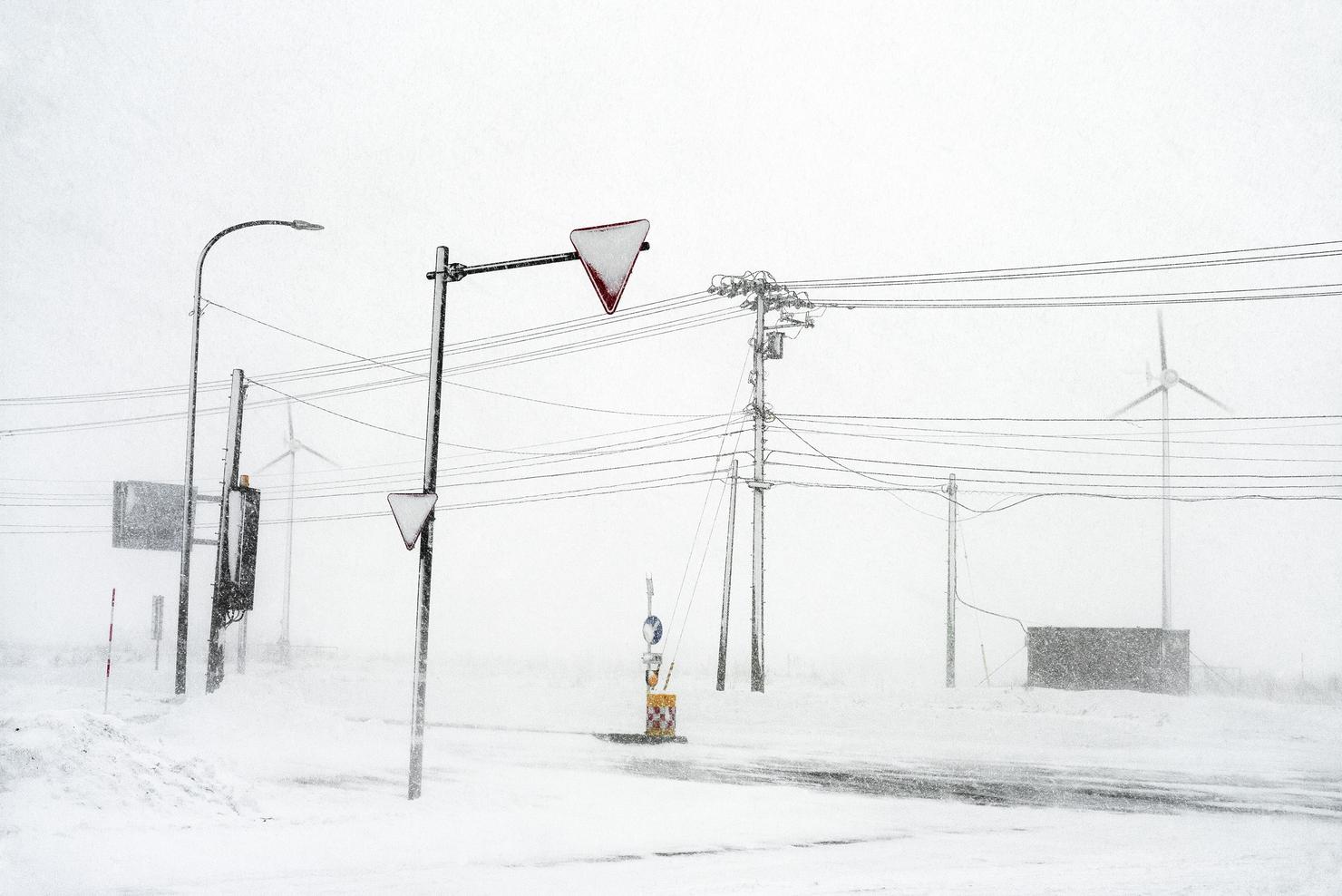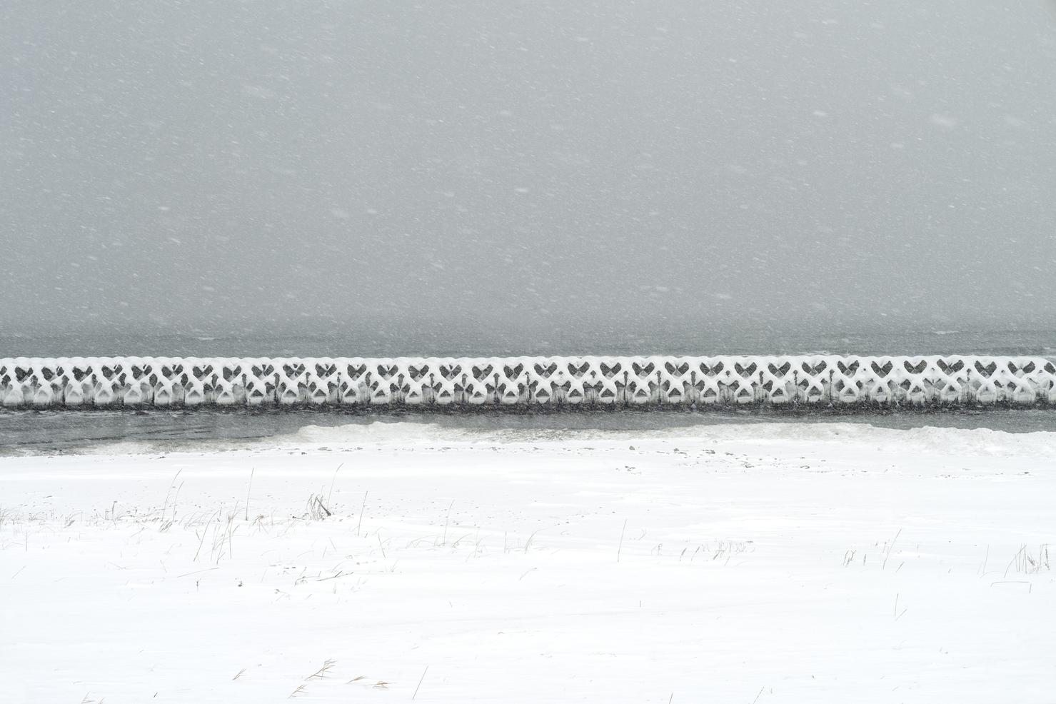 There is no need to scatter your focus: for those who know how to observe it, the landscape invites contemplation of its riches and its many subtle variations. After an initial visit in 2023, Catherine Henriette decided to return several times to the same region of Hokkaidō, in the far north of Japan, more precisely to Wakkanai, the terminus of a railway line, near Cape Sōya. It is a coastline where no one really wants to go in the middle of winter because of the harsh climate, strong winds, intense cold, short days and scarce light; but, being familiar with stays at high altitudes in the Pyrenean mountains, such conditions did not deter her. The stormy climate in this part of Japan gave her the opportunity to confront a landscape that lends itself to multiple visual interpretations. And it is within a small area, during the few hours of daylight at midday, that she finds material to photograph.