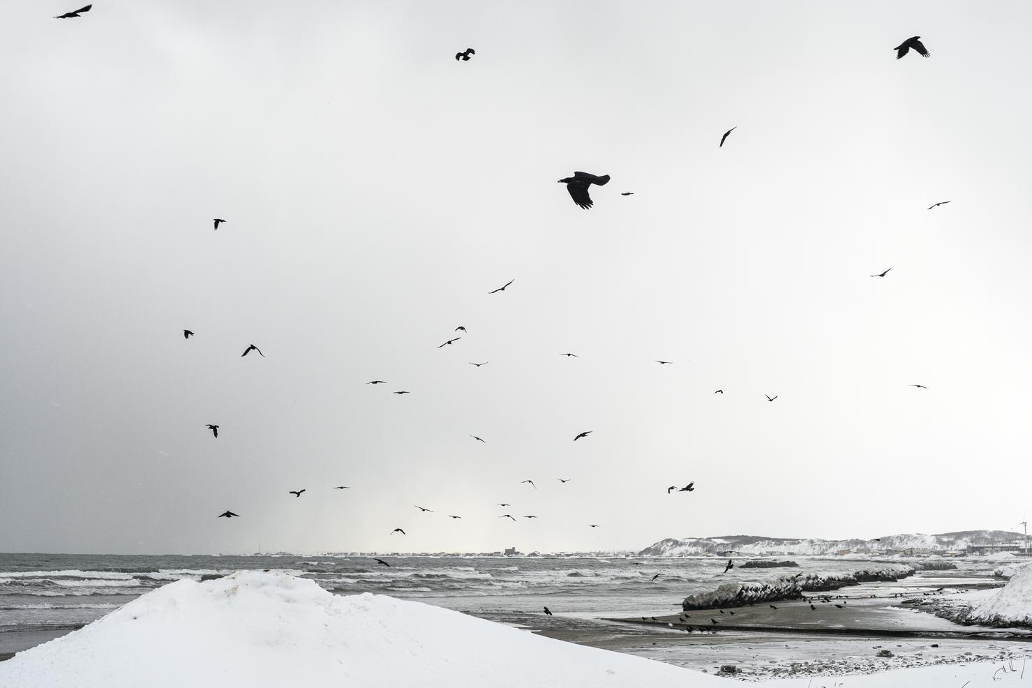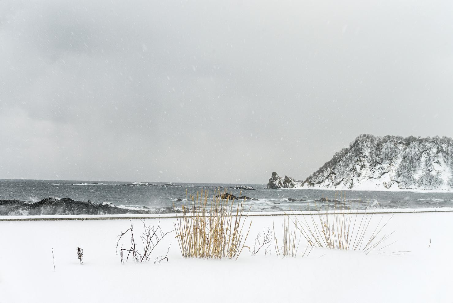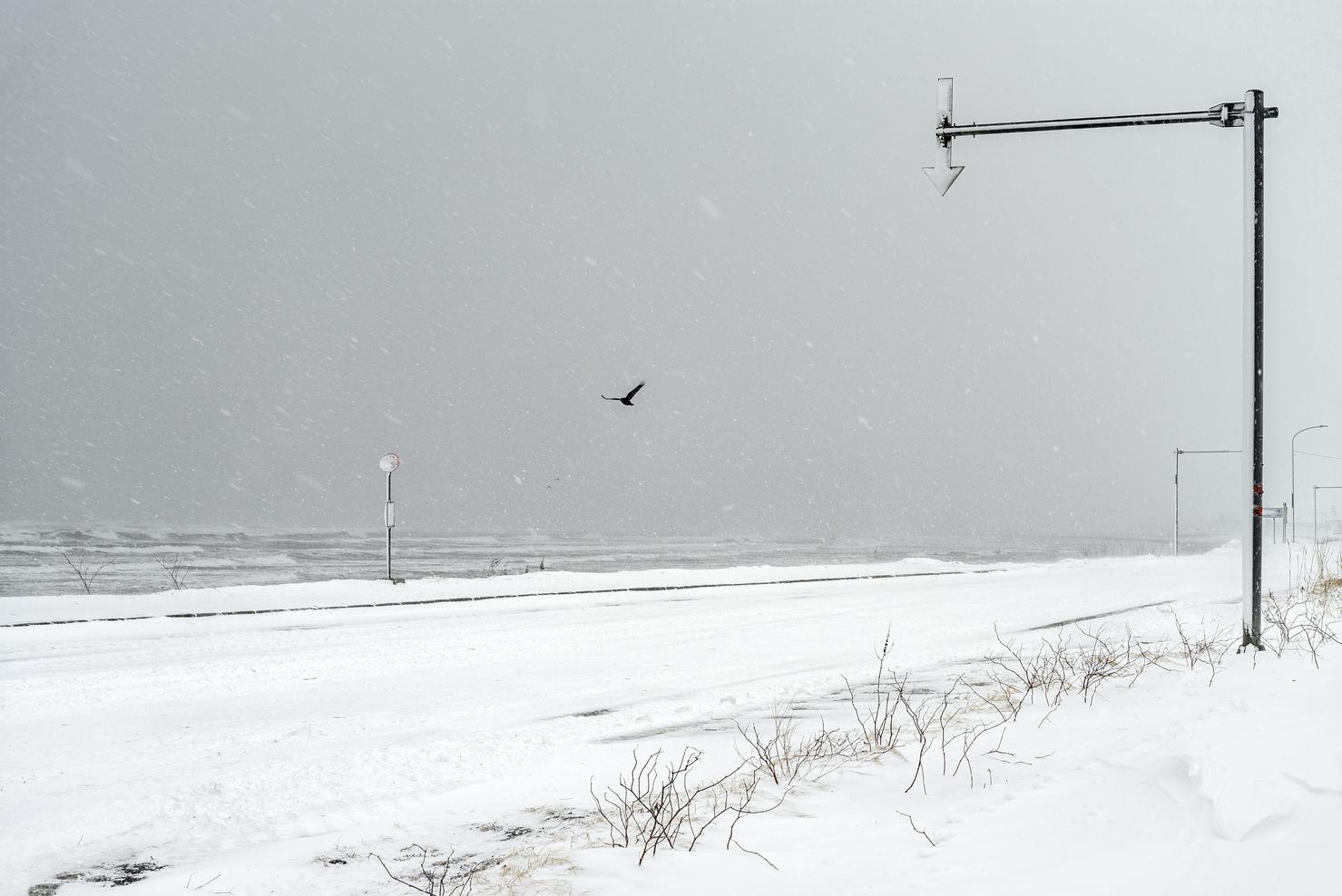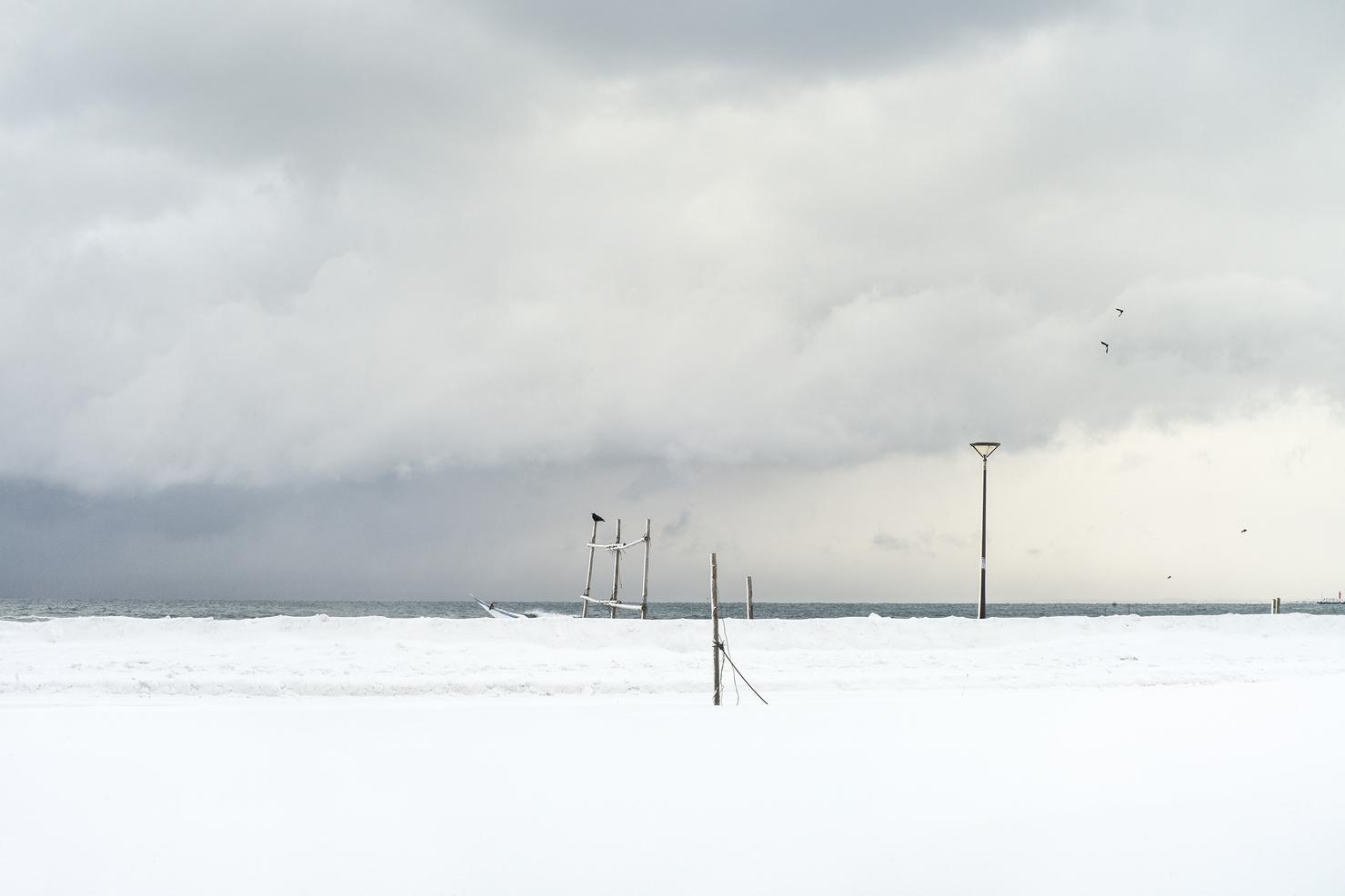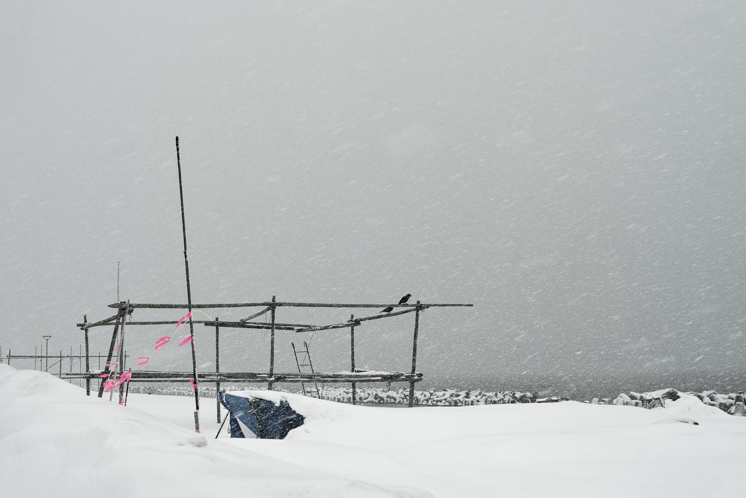 There is no need to scatter your focus: for those who know how to observe it, the landscape invites contemplation of its riches and its many subtle variations. After an initial visit in 2023, Catherine Henriette decided to return several times to the same region of Hokkaidō, in the far north of Japan, more precisely to Wakkanai, the terminus of a railway line, near Cape Sōya. It is a coastline where no one really wants to go in the middle of winter because of the harsh climate, strong winds, intense cold, short days and scarce light; but, being familiar with stays at high altitudes in the Pyrenean mountains, such conditions did not deter her. The stormy climate in this part of Japan gave her the opportunity to confront a landscape that lends itself to multiple visual interpretations. And it is within a small area, during the few hours of daylight at midday, that she finds material to photograph.