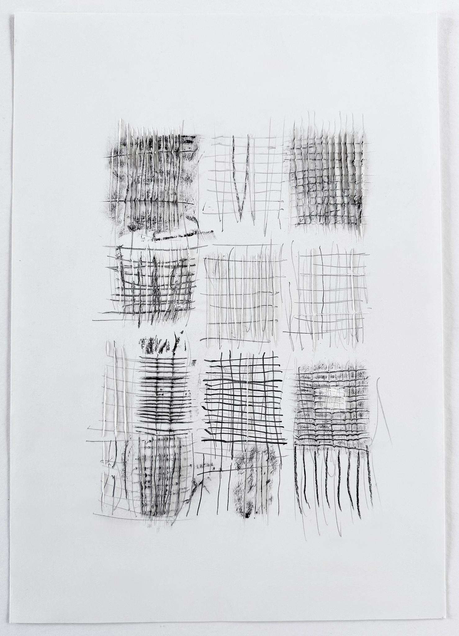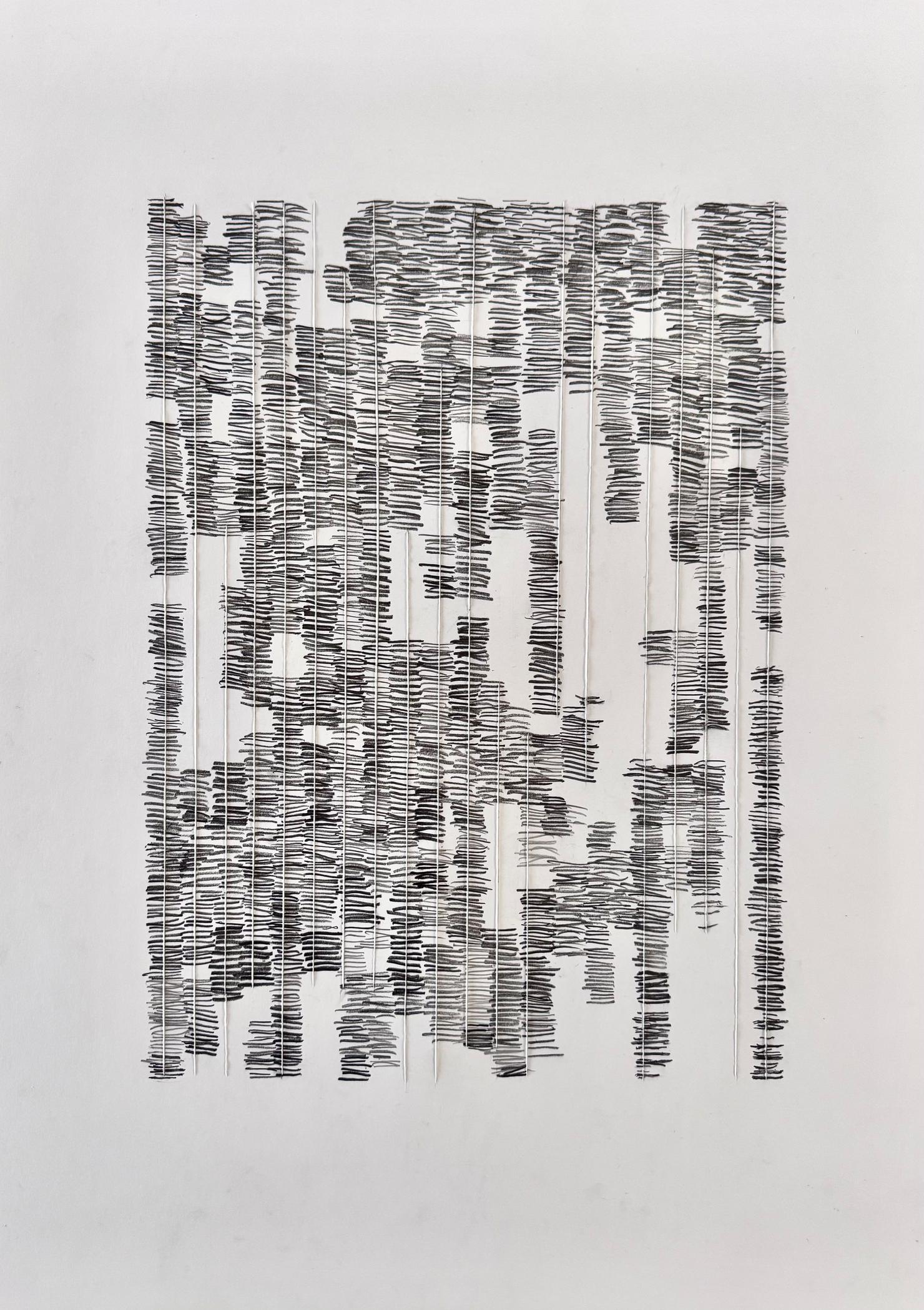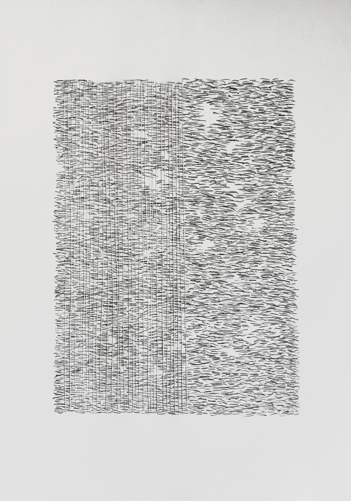 Leonie Mertes explores new forms of drawing with her works on paper, using classic materials - a natural white 190g drawing paper and graphite pencils in HB to 2H. She uses these relatively simple materials to question the relationship between the graphite drawing and its medium. For example, she uses the graphite pencil to detach fibers from the sheet with short, closely spaced strokes so that they literally start to stick out. This creates a felt-like surface that forms an exciting contrast to the smooth surface of the paper.