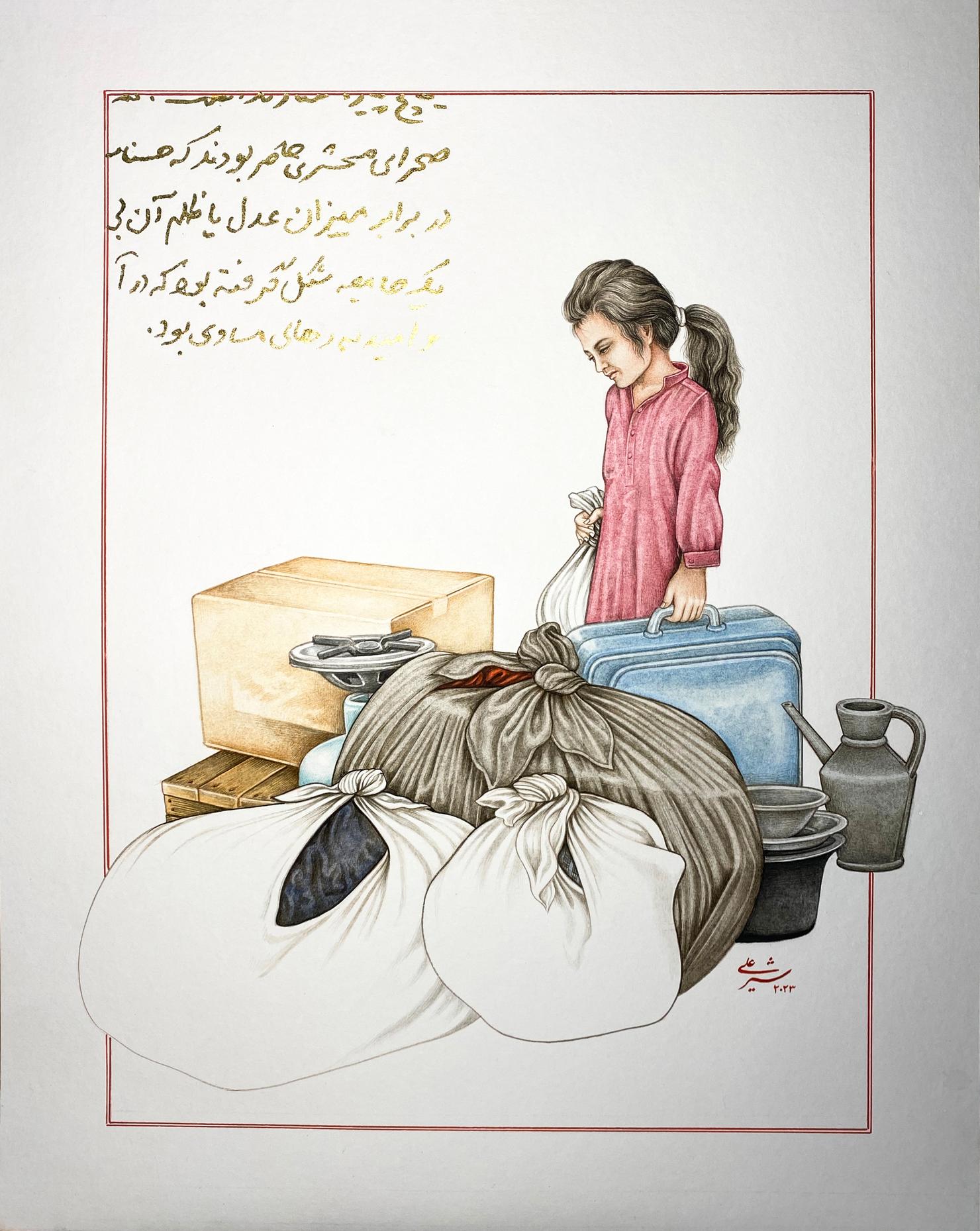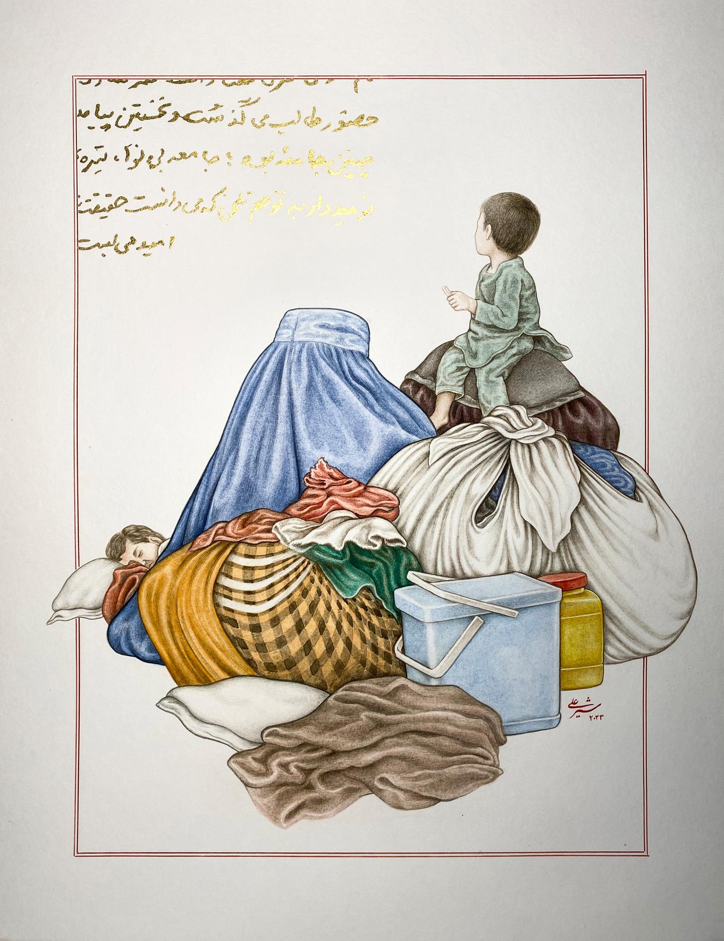 Both artists in exile (Khademi in France since 2015, Ali in Australia since 2021) paint with gouache on paper in the continuity of the Mughal tradition of miniature that they initially learned at the Art High School in Kabul. Through this media, they intend to share with the world their love for their country and for freedom.